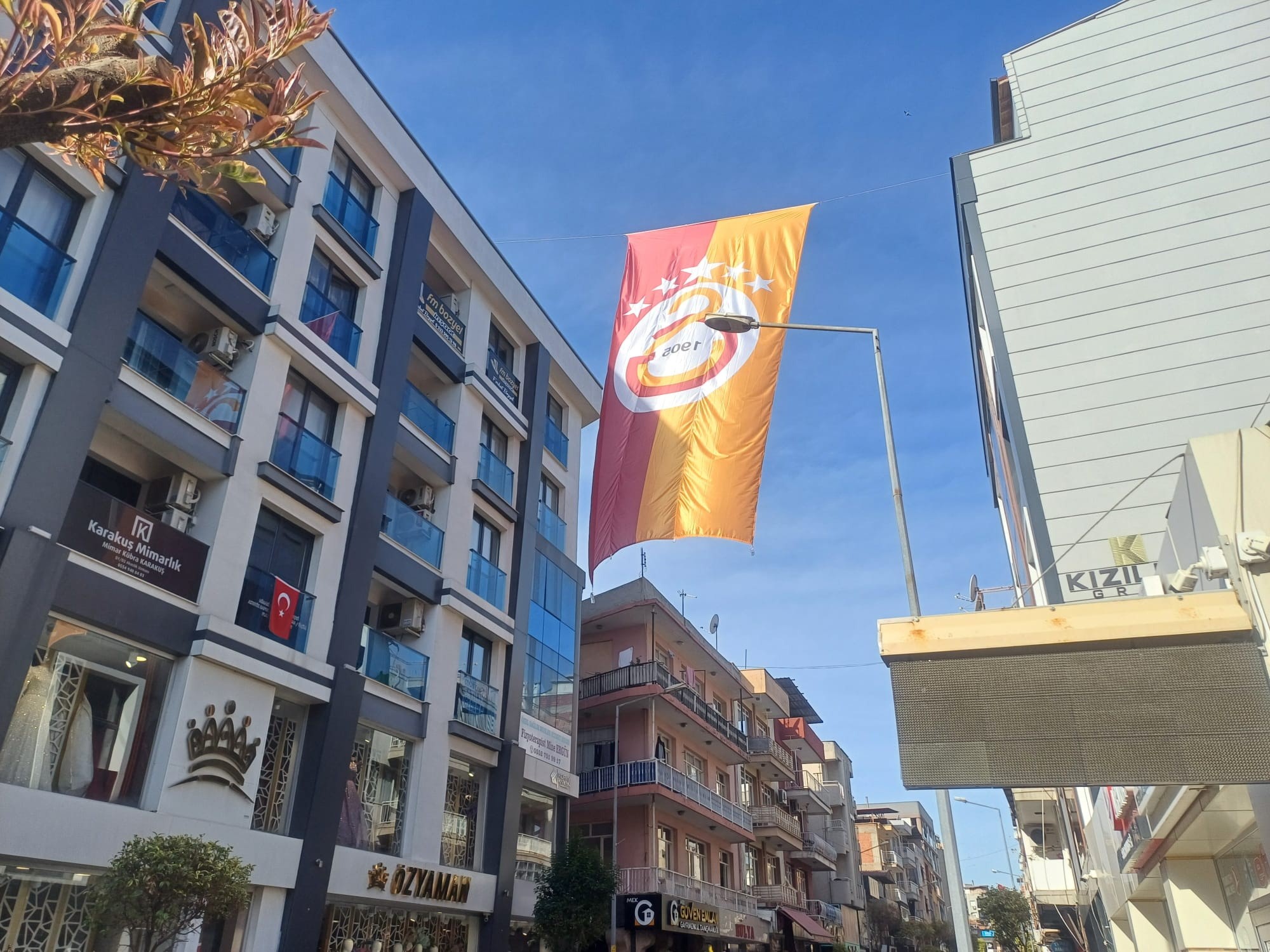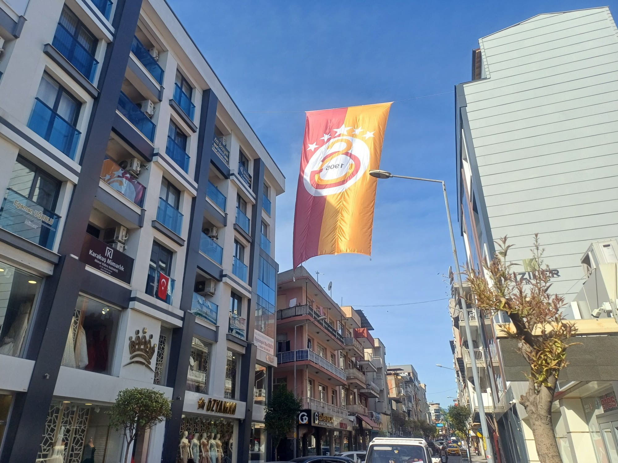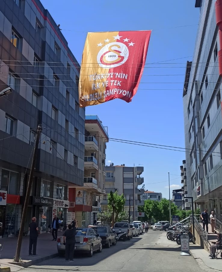Salihli'de sarı-kırmızı renklere gönül veren taraftarlar tarafından beş yıldızlı dev Galatasaray bayrakları, Salihli'de Turan ve Menderes Caddesi'nin yanı sıra evlerin balkonlarına asıldı.