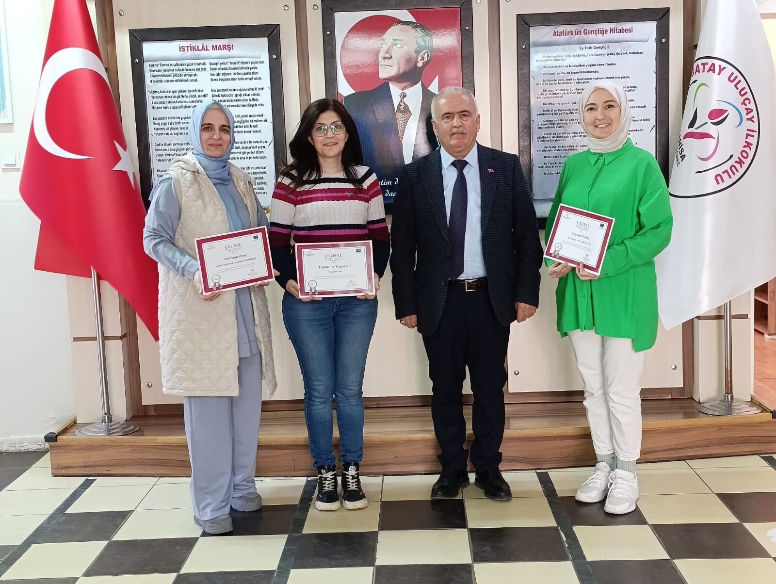 Ayrıca yürüttükleri başarılı projelerle uluslararası düzeyde “Kalite Etiketi” alan öğretmenler de başarılarıyla takdir topladı. Tören kapsamında proje yaygınlaştırma çalışmaları çerçevesinde stant açarak büyük ilgi gören 4-B sınıfı öğrencileri ve sınıf öğretmeni de tebrik edildi.