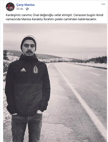 Değeroğlu'nun ölümünün ardından Beşiktaş taraftar grubu Çarşı Manisa, mesaj paylaştı.