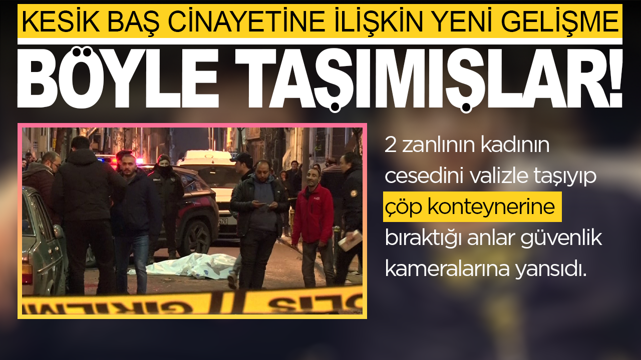 İki zanlının parçalanmış kadın cesedini valize koyup taşıdığı anlar güvenlik kameralarına da yansıdı. Görüntülerde şahıslar valize koydukları cesedi güçlükle taşıyarak çöp konetyneri yanına getiriyor. Etrafı kolaçan eden zanlılar cesedi konteynere bırakıyor.