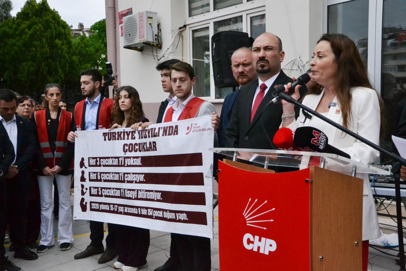 CHP Manisa İl Teşkilatı 23 Nisan Ulusal Egemenlik ve Çocuk Bayramı kapsamında İl Milli Eğitim Müdürlüğü önünde basın açıklaması düzenledi.Manisa Büyükşehir Belediye Başkanı Besim Dutlulu, CHP Manisa İl Başkanı İlksen Özalper, Şehzadeler Belediye Başkanı Hakan Şimşek, Yunusemre Belediye Başkanı Semih Balaban, CHP Yunusemre İlçe Başkanı Yalçın Arcak, CHP Şehzadeler İlçe Başkanı Mert Özkösemen ellerinde öldürülen çocukların yer aldığı pankartlarla birlikte Cumhuriyet Meydanı’ndan Milli Eğitim Müdürlüğü önüne kadar yürüdü.