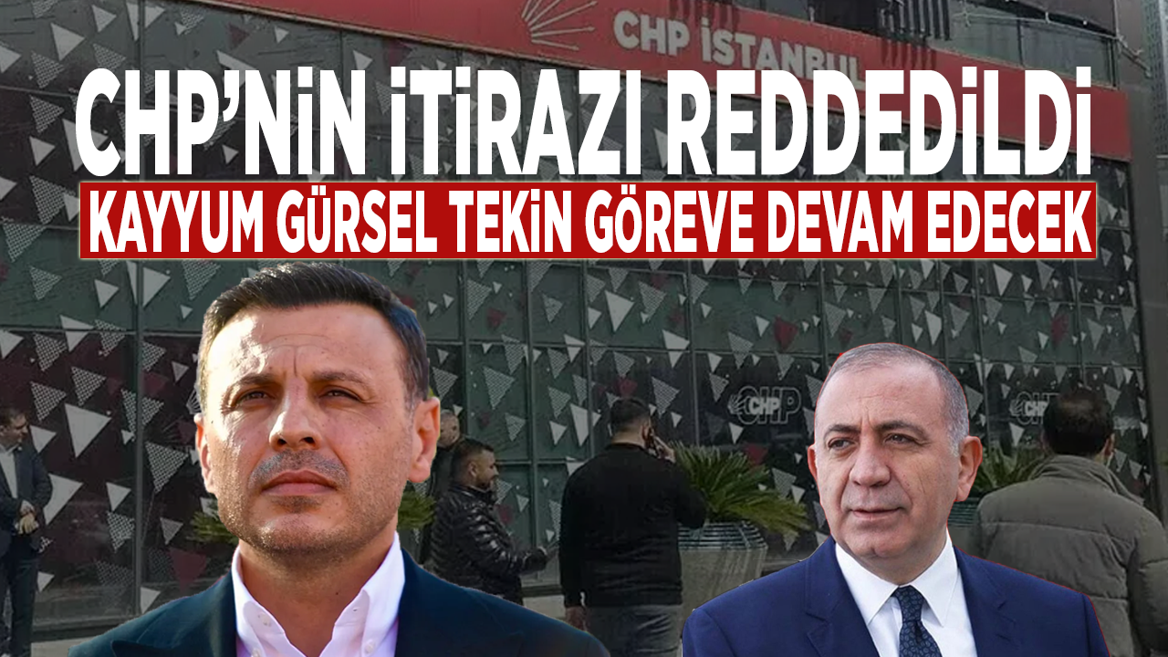 CHP İl Başkanlığı'nın ihtiyati tedbir kararına yaptığı itiraz reddedildi. Mahkeme kararına göre kayyum Gürsel Tekin ve heyeti görevine devam edecek.