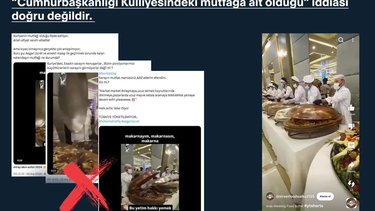 Söz konusu iddiaya konu görüntülerin Pakistanlı bir içerik üreticisi tarafından sosyal medya platformlarında, 'Suudi düğün yemeği büfesi' başlığıyla paylaşıldığı ve Türkiye ile herhangi bir ilgisinin bulunmadığı tespit edildiği belirtilirken, "Görüntülerden alınan bir bölümün, ses eklenerek manipülasyon amaçlı kullanıldığı belirlenmiştir. Kamuoyunu manipüle etmeye yönelik asılsız iddialara itibar etmeyiniz" ifadeleri yer aldı.