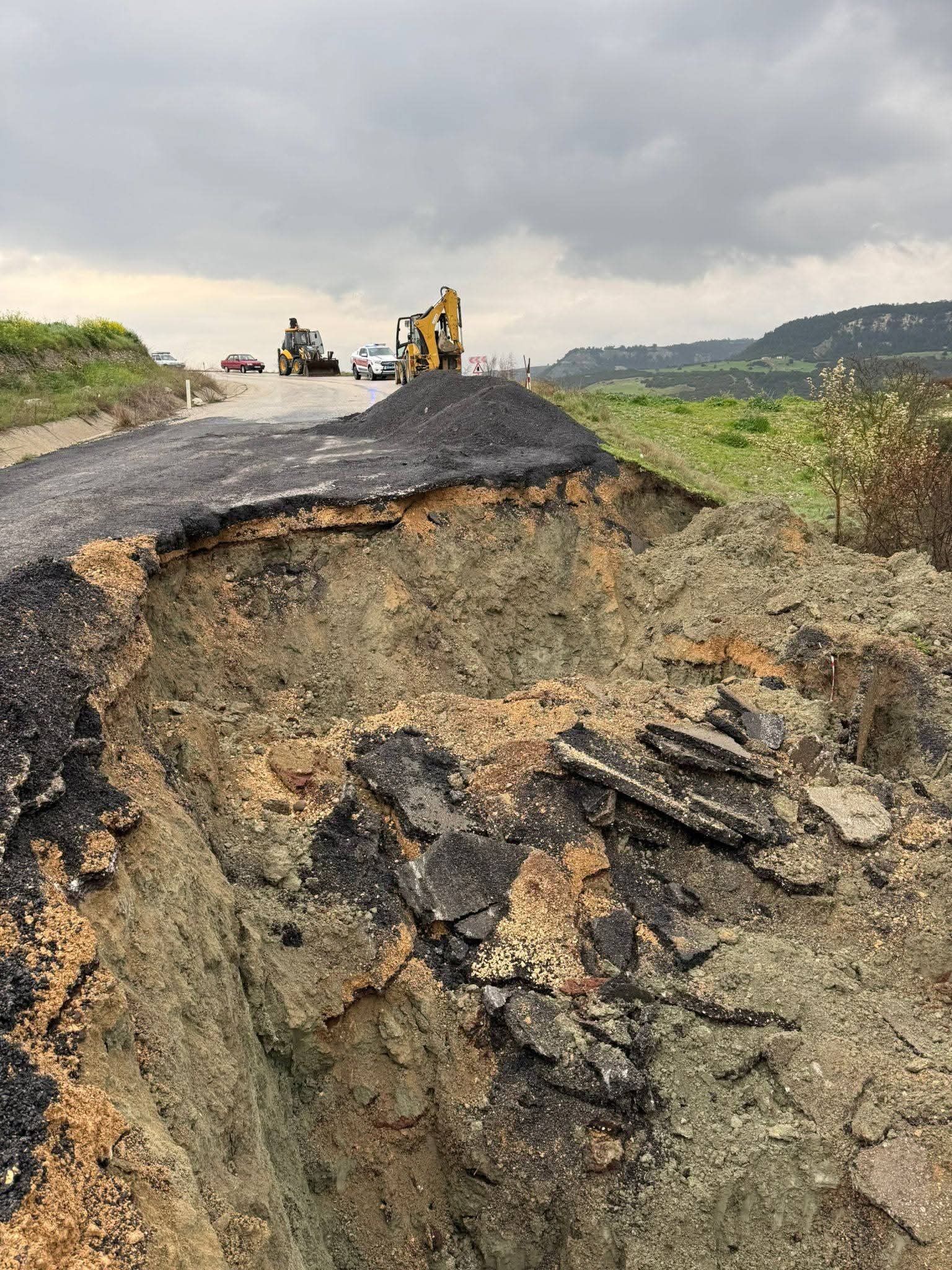 Bölgede incelemelerde bulunan ekipler, çöken yol kesiminde dolgu ve güçlendirme çalışmalarına başladı. Yetkililer, yolun yeniden güvenli şekilde ulaşıma açılması için çalışmaların yoğun şekilde sürdürüldüğünü belirtti.