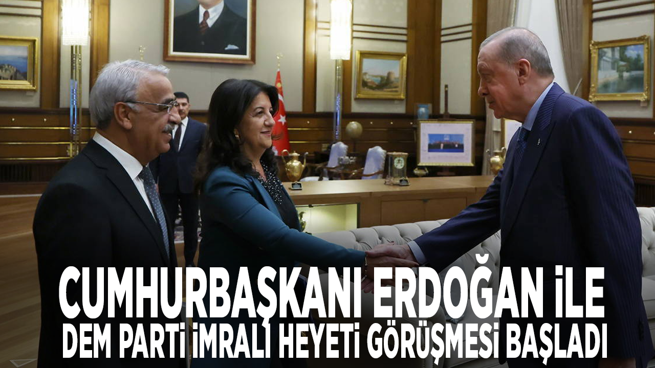 Cumhurbaşkanı Recep Tayyip Erdoğan ile DEM Parti İmralı Heyeti üyeleri Pervin Buldan ve Mithat Sancar arasındaki görüşme Beştepe'deki Saray'da gerçekleşiyor.
