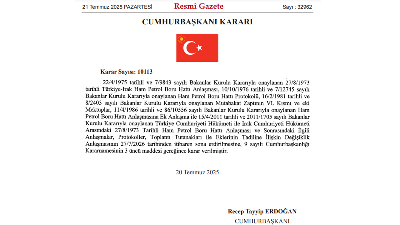 Karar, Cumhurbaşkanı Tayyip Erdoğan’ın imzasıyla 20 Temmuz 2025 tarihli Resmî Gazete'de yayımlandı.