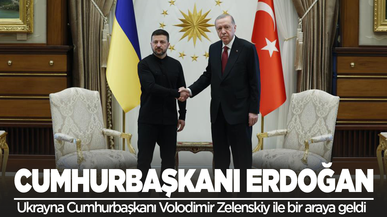 Cumhurbaşkanı Erdoğan, Zelenskiy'i Cumhurbaşkanlığı Külliyesi giriş kapısında karşıladı. Erdoğan ve Zelenskiy, merdivenlerde Türk ve Ukrayna bayrakları önünde fotoğraf çektirdi.