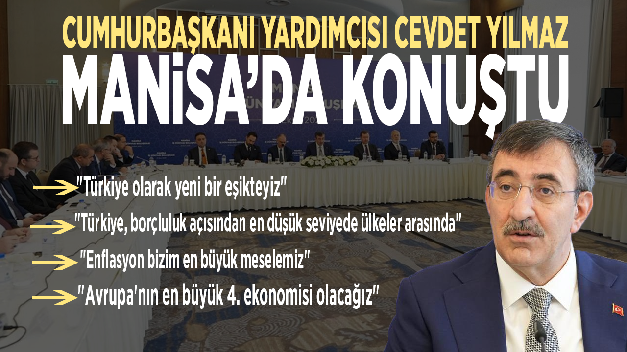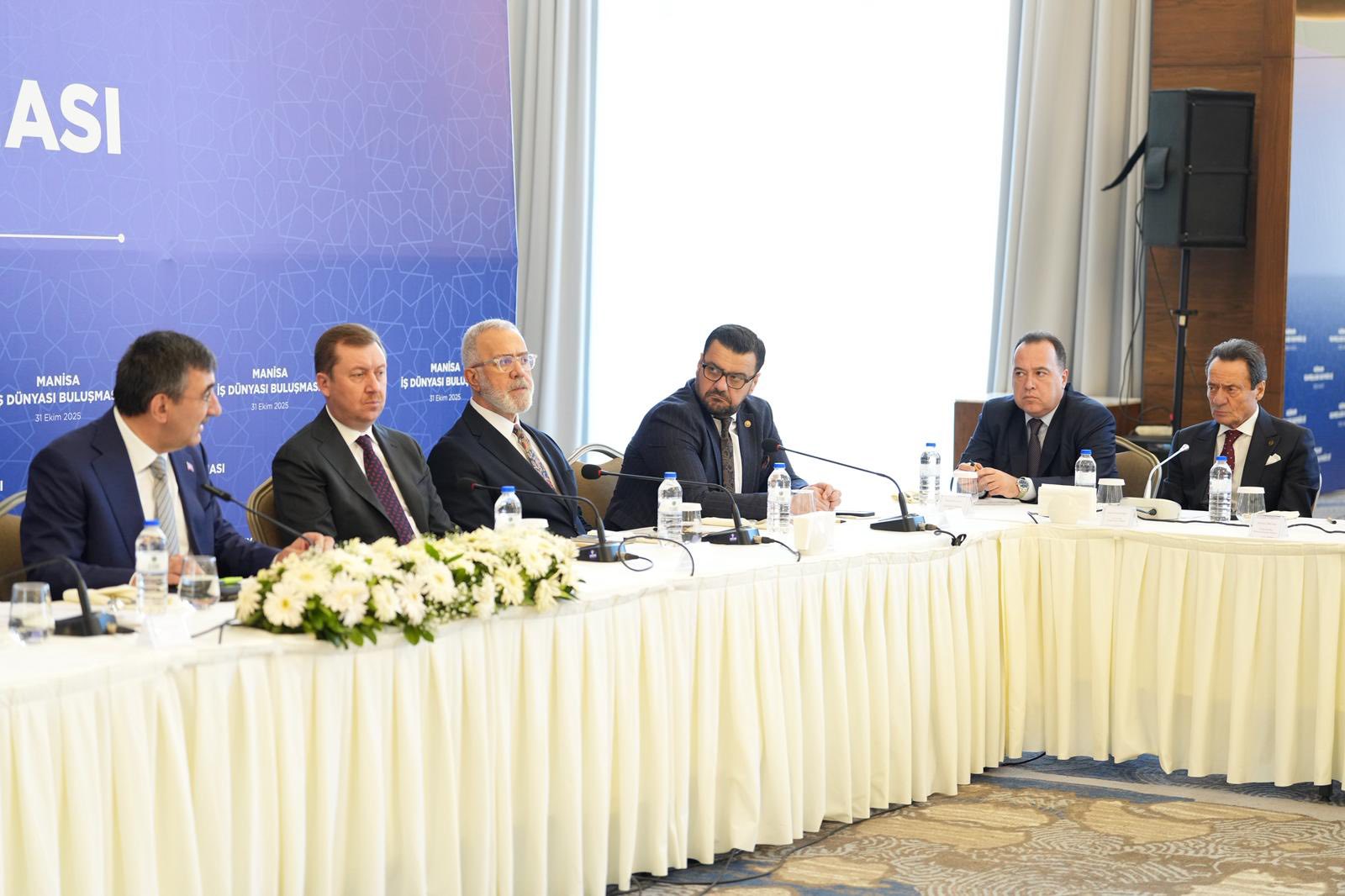 Cumhurbaşkanı Yardımcısı Cevdet Yılmaz, Manisa'da iş dünyasının temsilcileriyle buluştu. Cumhurbaşkanlığı Genel Sekreteri Hakkı Susmaz, Manisa Valisi Vahdettin Özkan, AK Parti Grup Başkanvekili ve Manisa Milletvekili Bahadır Yenişehirlioğlu, Manisa Büyükşehir Belediye Başkanı Besim Dutlulu, AK Parti Manisa milletvekilleri Mücahit Arınç, Murat Baybatur, Tamer Akkal, Manisa Ticaret ve Sanayi Odası Başkanı Mehmet Yılmaz, sanayiciler ve iş adamları katıldı.