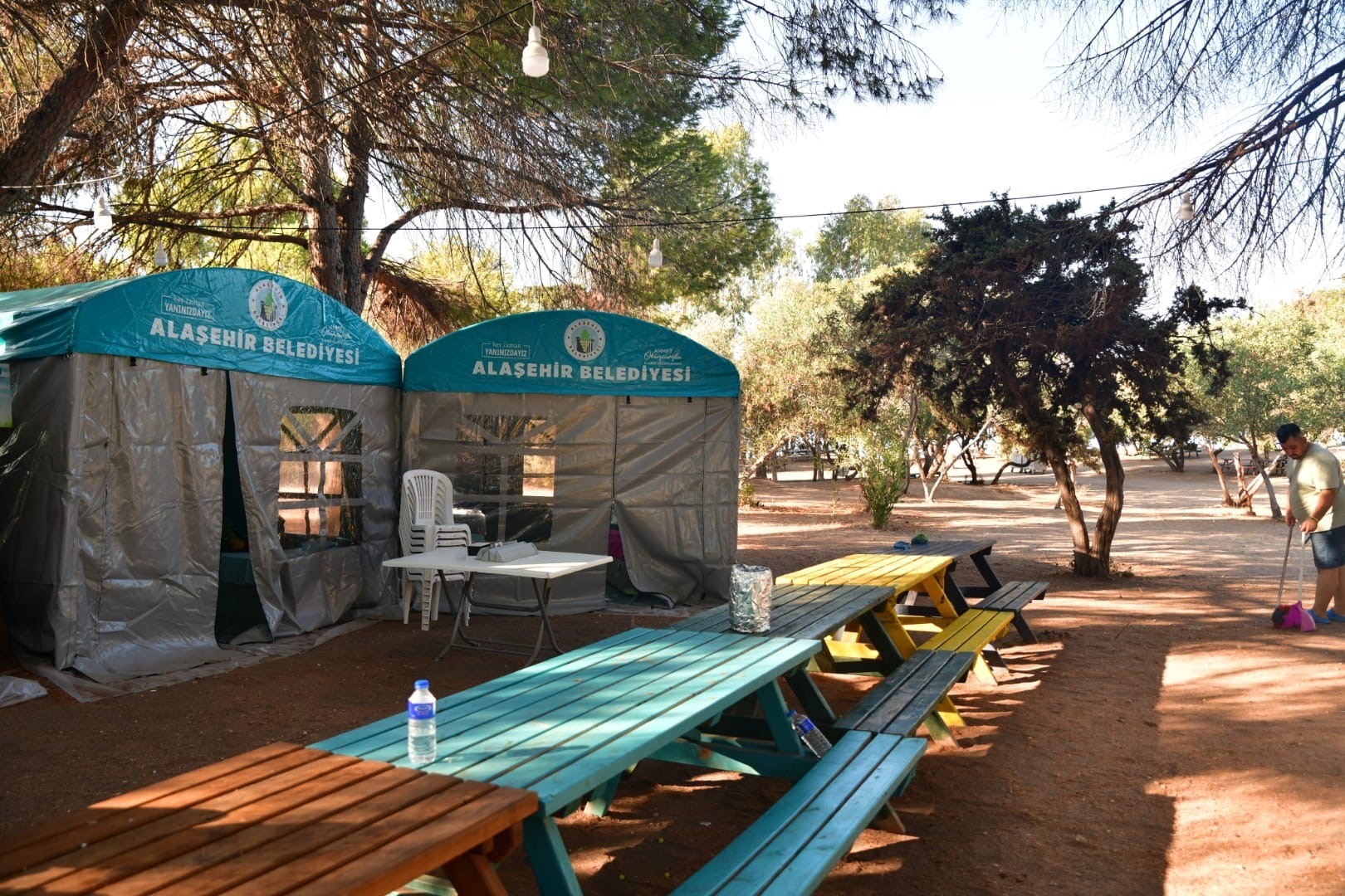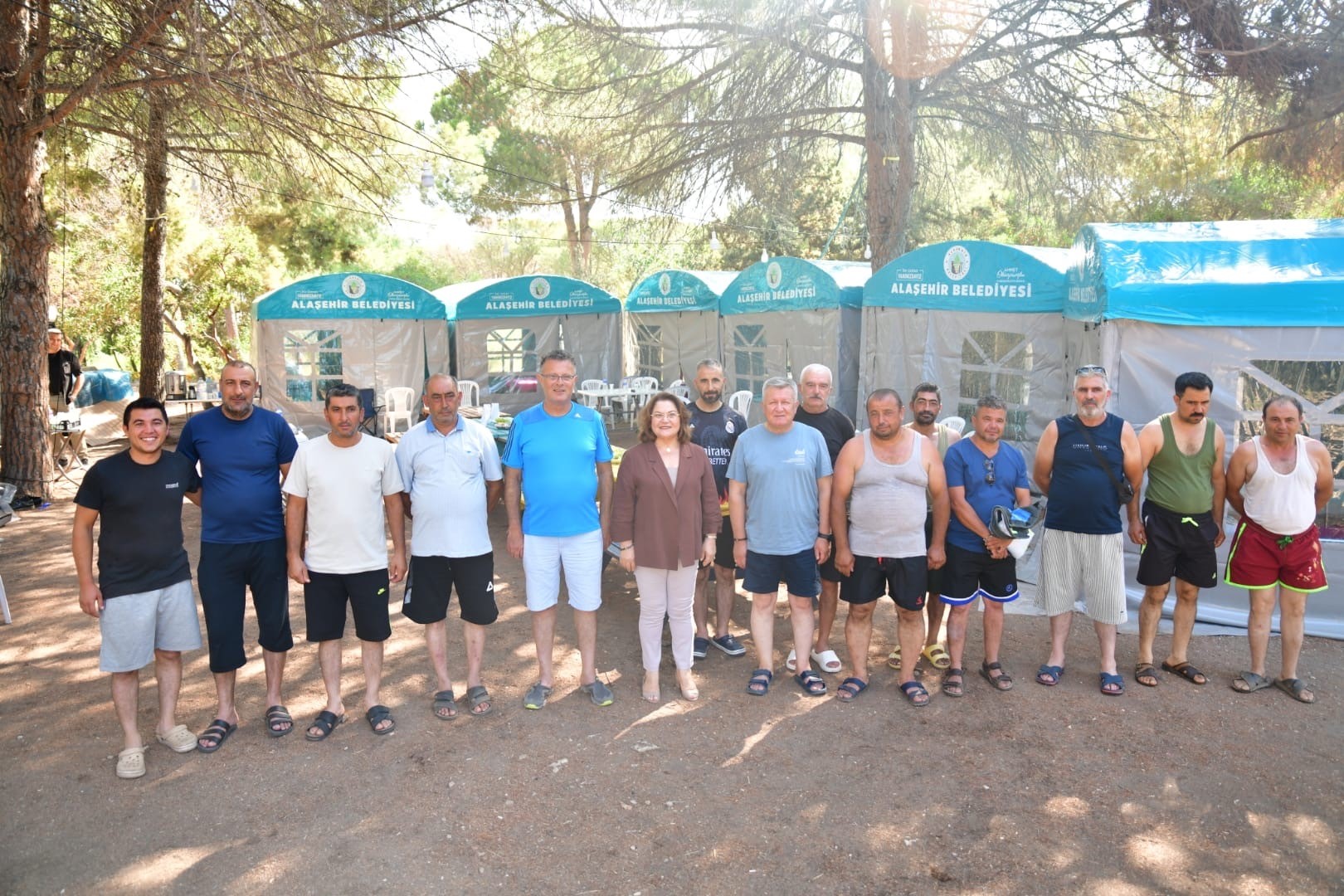 Alaşehir Belediyesi çalışanlarına özel olarak Didim'de çadır kamp alanı oluşturuldu. 15 metrekarelik 8 kamp çadırının kurulduğu alanda tatil yapan personel; denize girip serinledi, kum voleybolu oynadı, boş zamanlarında sohbet edip oyunlar oynayarak stres attı.