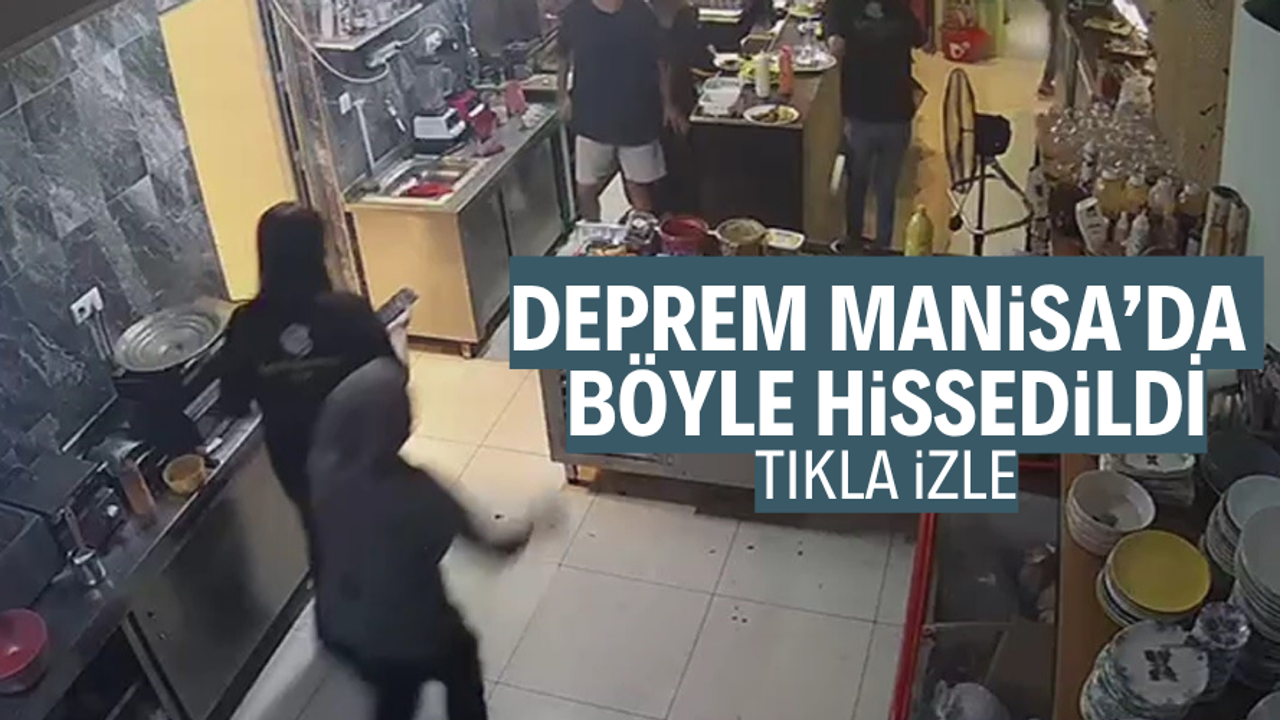 MANİSA (İHA) - Merkez üssü Balıkesir'in Sındırgı ilçesi olan ve 11 kilometre derinlikte meydana gelen 6.1 büyüklüğündeki deprem, çevre il ve ilçelerde olduğu gibi Manisa’nın Kula ilçesinde de hissedildi. Afet ve Acil Durum Yönetimi Başkanlığının (AFAD) internet sitesinde yer alan bilgiye göre 19.53'te meydana gelen deprem anı, Kula’daki bir kafeteryanın güvenlik kameralarına saniye saniye yansıdı. Görüntülerde depremi hisseden kafe çalışanlarının büyük bir korkuyla kaçıştıkları ve kafeteryanın demir profillerinin sallandığı görüldü.