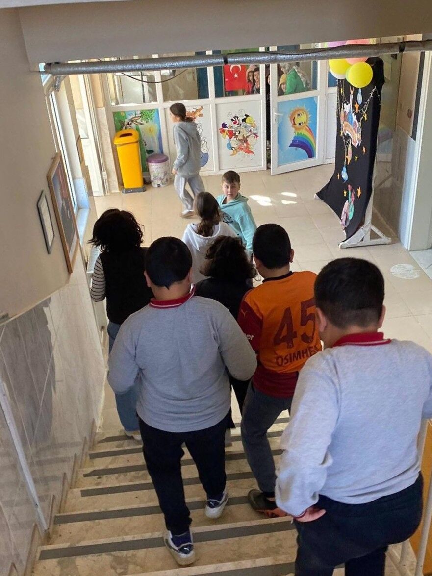 1-7 Mart Deprem Haftası kapsamında düzenlenen tatbikatta, öğrencilere muhtemel bir deprem anında nasıl davranmaları gerektiği uygulamalı olarak gösterildi.