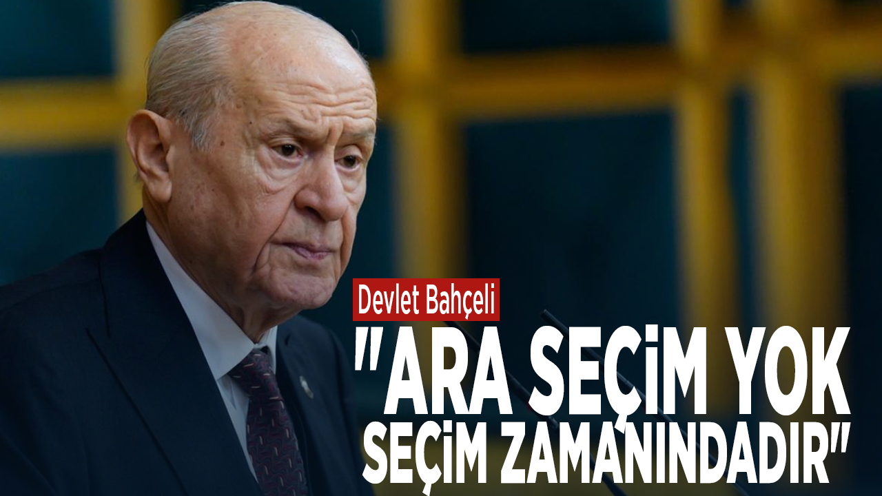 Milliyetçi Hareket Partisi (MHP) Genel Başkanı Devlet Bahçeli, ara seçim tartışmalarına ilişkin "Ara seçim yok, seçim zamanındadır. Türk milletinin iradesidir, o iradeye de şimdiden saygı duymak lazımdır" dedi.