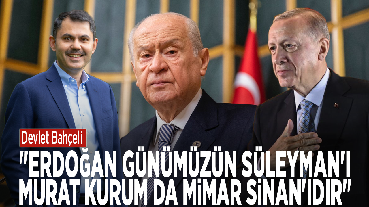 MHP Genel Başkanı Devlet Bahçeli, Hatay'da yaptığı konuşmada, Cumhurbaşkanı için "Günümüzün Süleyman'ı" ifadesini kullandı. Bahçeli, Çevre, Şehircilik ve İklim Değişikliği Bakanı Murat Kurum'un ise "Günümüzün Mimar Sinan'ı" olduğunu söyledi.