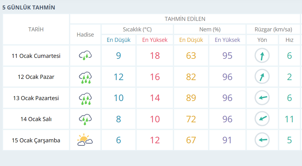 MANİSA İÇİN 5 GÜNLÜK HAVA TAHMİNİ
