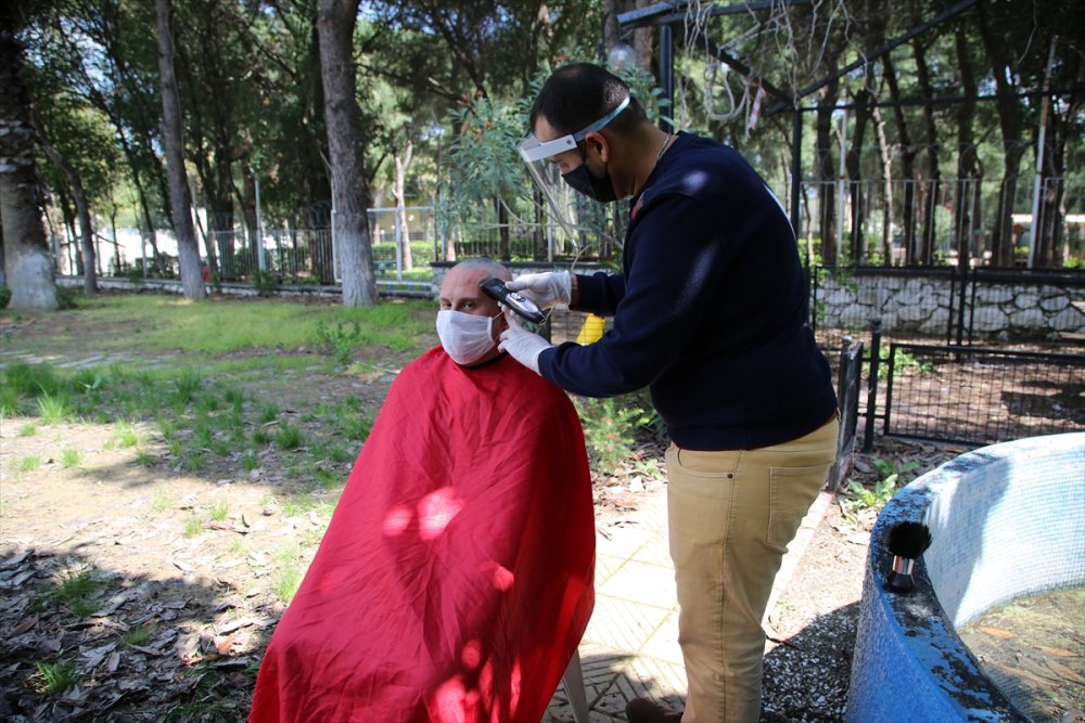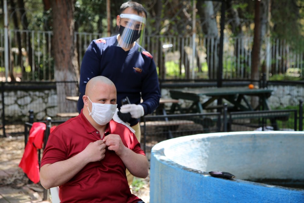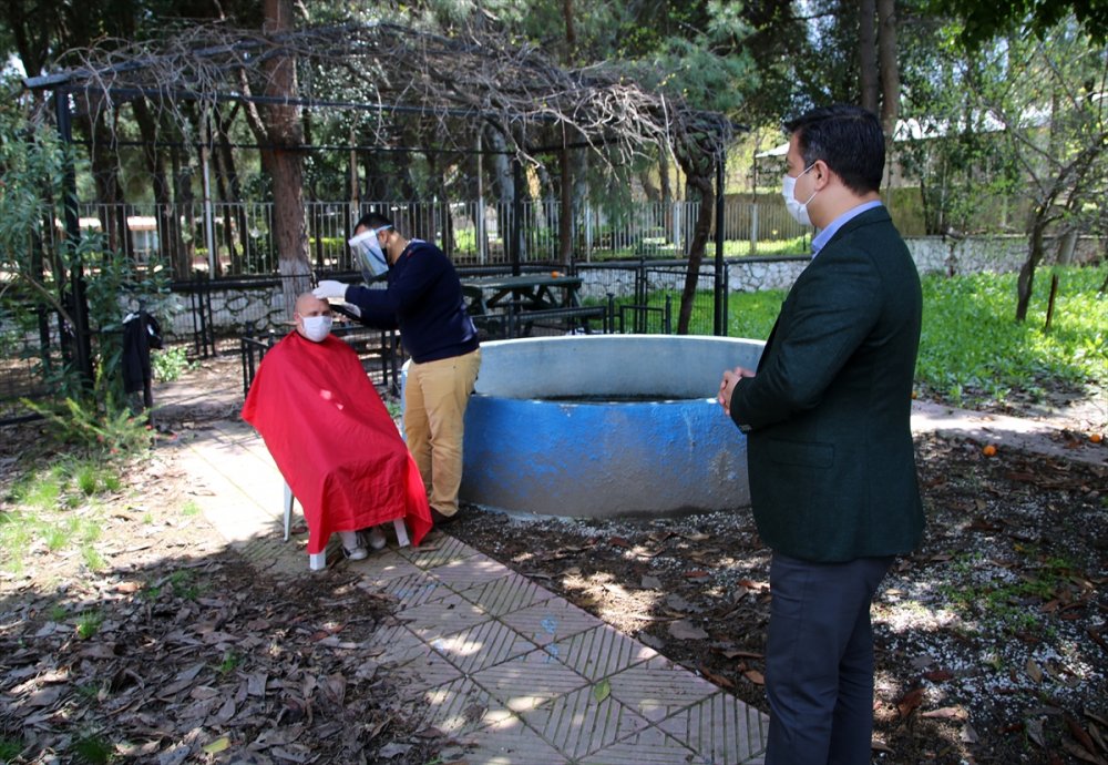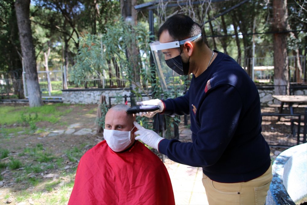 Burada il müdürlüğünde çalışan ve daha önce berberlik yapan bir personel tarafından kurumun bahçesinde gerekli sağlık tedbirleri alınarak tıraş edilen Aslan, kendisini rahatsız eden saçlarından kurtulunca büyük mutluluk yaşadı.