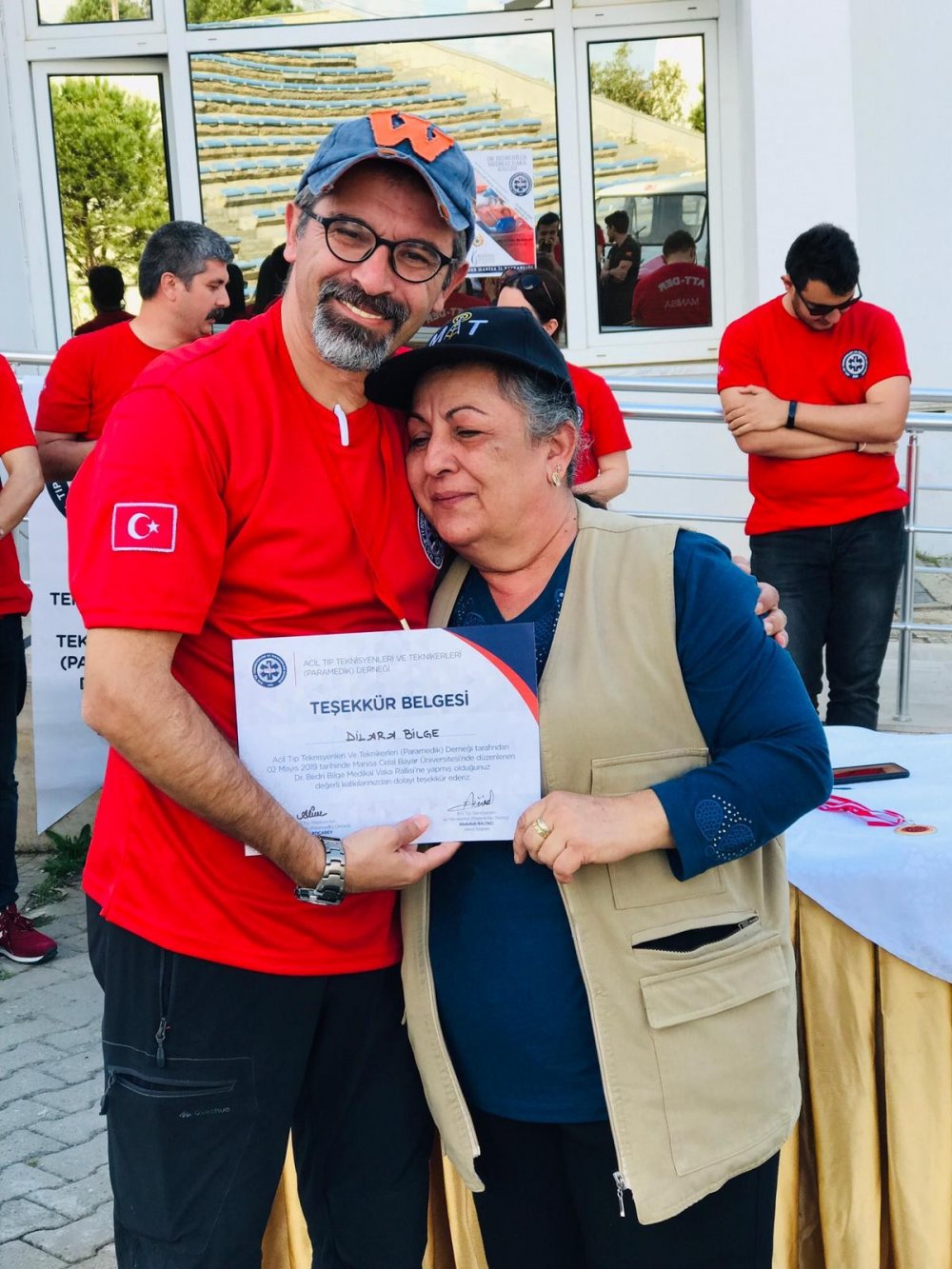 Programın sonunda Acil Tıp Teknisyenleri ve Teknikerleri Derneği tarafından hazırlanan teşekkür belgesi Dr. Bedri Bilge’nin mesai arkadaşı Özdal Beşoluk tarafından Dilara Bilge’ye takdim edildi.