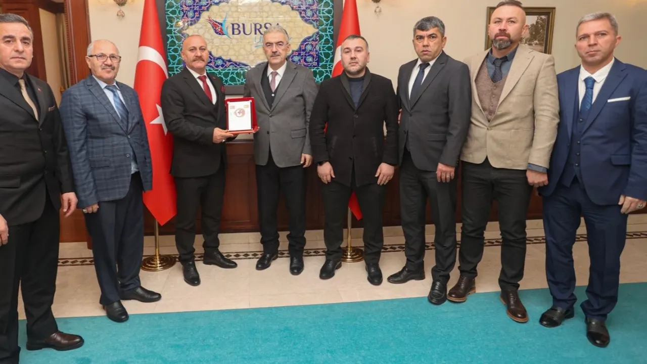 Dünya Türk Birliği Güney Marmara Bölge Başkanlığı ve yönetimi Bursa Valisi Erol Ayyıldız’ı ziyaret ettiEnver GÜLER / BURSA  (İGFA) - Dünya Türk Birliği Güney Marmara Bölge Başkanı Cemalettin Açar, Bölge Başkan Yardımcısı İsmail Komar, İl Başkanı Dr Kazım Recep Mamlagil, Genel Merkez Genel  Sekreteri Enver Güler, Bölge Başkan yardımcısı Fatih Halisdemir,  Bölge Başkan yardımcısı Hasan Tüfekçi ve Bölge Başkan yardımcısıdır Bünyamin Akdemir Vali Ayyıldız’a çalışmalar hakkında bilgi verdiler.