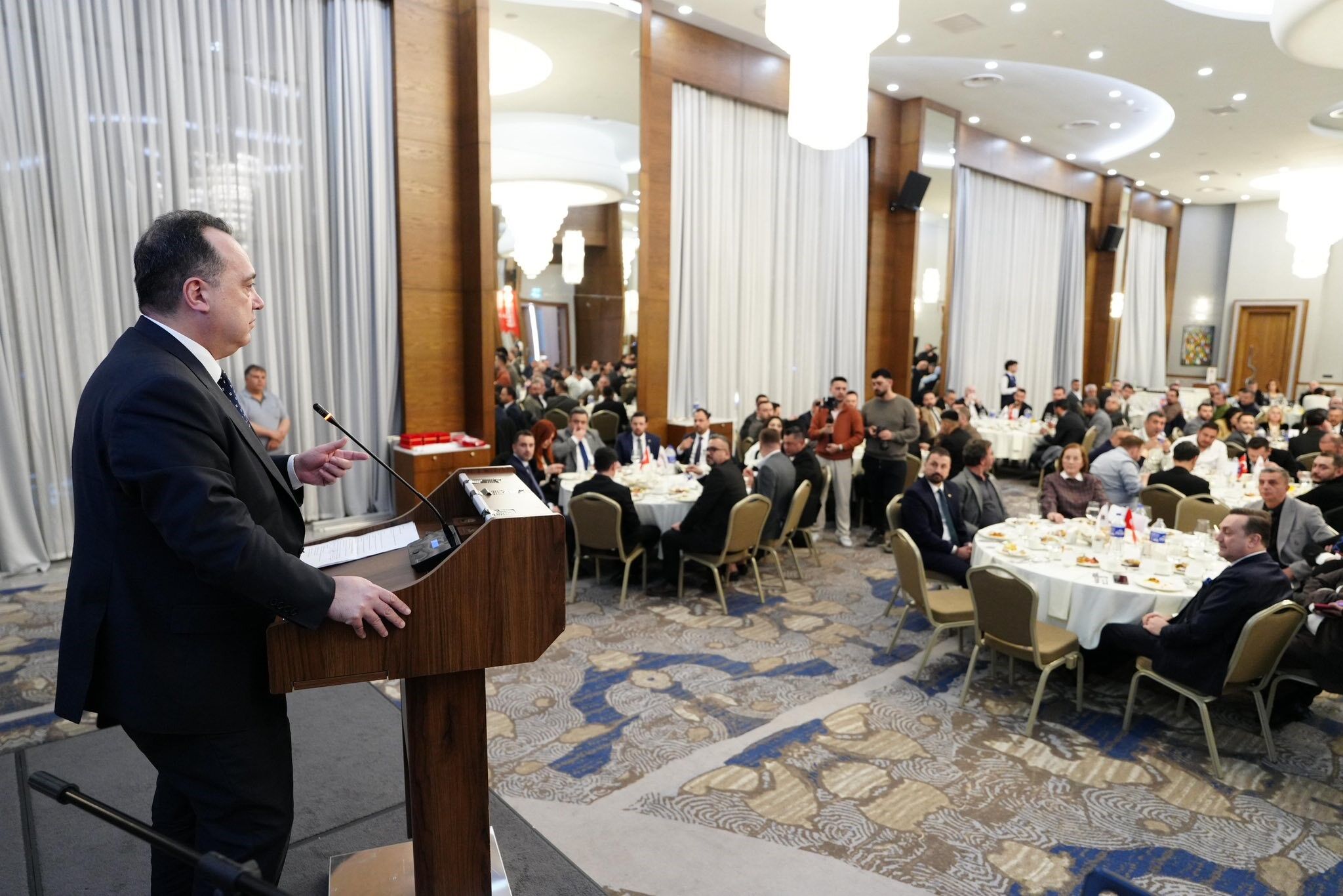 İftar programında konuşma yapan Manisa Büyükşehir Belediye Başkanı Besim Dutlulu, "Ramazan akşamında sofralarınızı bizimle paylaştınız. Dernek başkanımız çok güzel bir konuşma yaptı. İhtiyaç sahiplerine destek oluyorsunuz, sivil toplum örgütlerine destek oluyorsunuz. Bu şekilde insanlara destek olduğunuz için Manisalı olarak, belediye başkanı olarak çok teşekkür ederim" dedi.