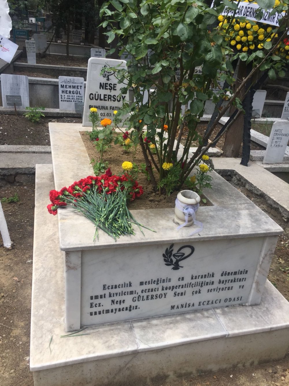 Törene CHP Manisa İl Başkanı Semih Balaban, 29. Bölge Manisa Eczacı Odası Başkanı Devrim Balı, İzmir Eczacı Odası başkanı Ecz. Tuncay Sayılkan, EDAK Ecza Koop Başkanı Sarp Yaklav ve eczacılar katıldı. 29. Bölge Manisa Eczacı Odası Başkanı Devrim Balı, “Mesleki birlikteliğin, örgütlülüğün önemini, bilincini bizlere aşılayan, yolumuza ışık tutan Neşe ablamızı saygı, minnet ve özlemle anıyoruz" diye konuştu. Daha sonra 15 Temmuz Demokrasi Meydanı’nda Neşe Gülersoy anısına lokma hayrı yapıldı.