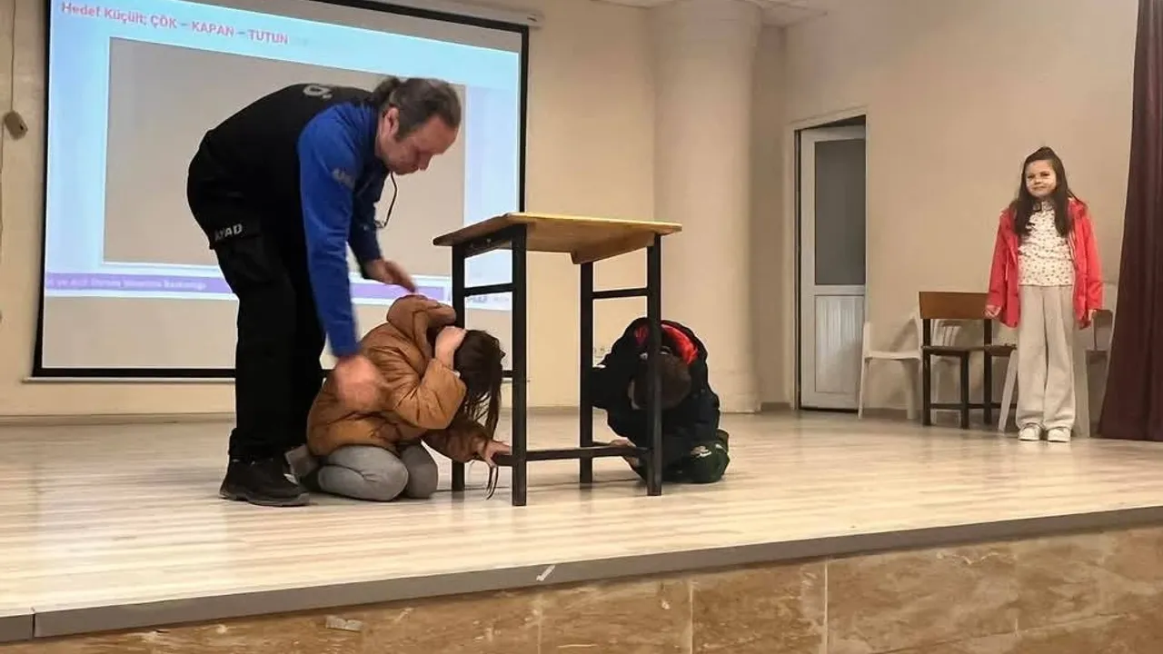 Eğitimin ardından, öğrencilerle deprem tatbikatı yapıldı. Tatbikat sırasında öğrenciler, deprem anında sınıflarında nasıl hareket etmeleri gerektiğini ve güvenli tahliye sürecini uygulamalı olarak öğrendi.