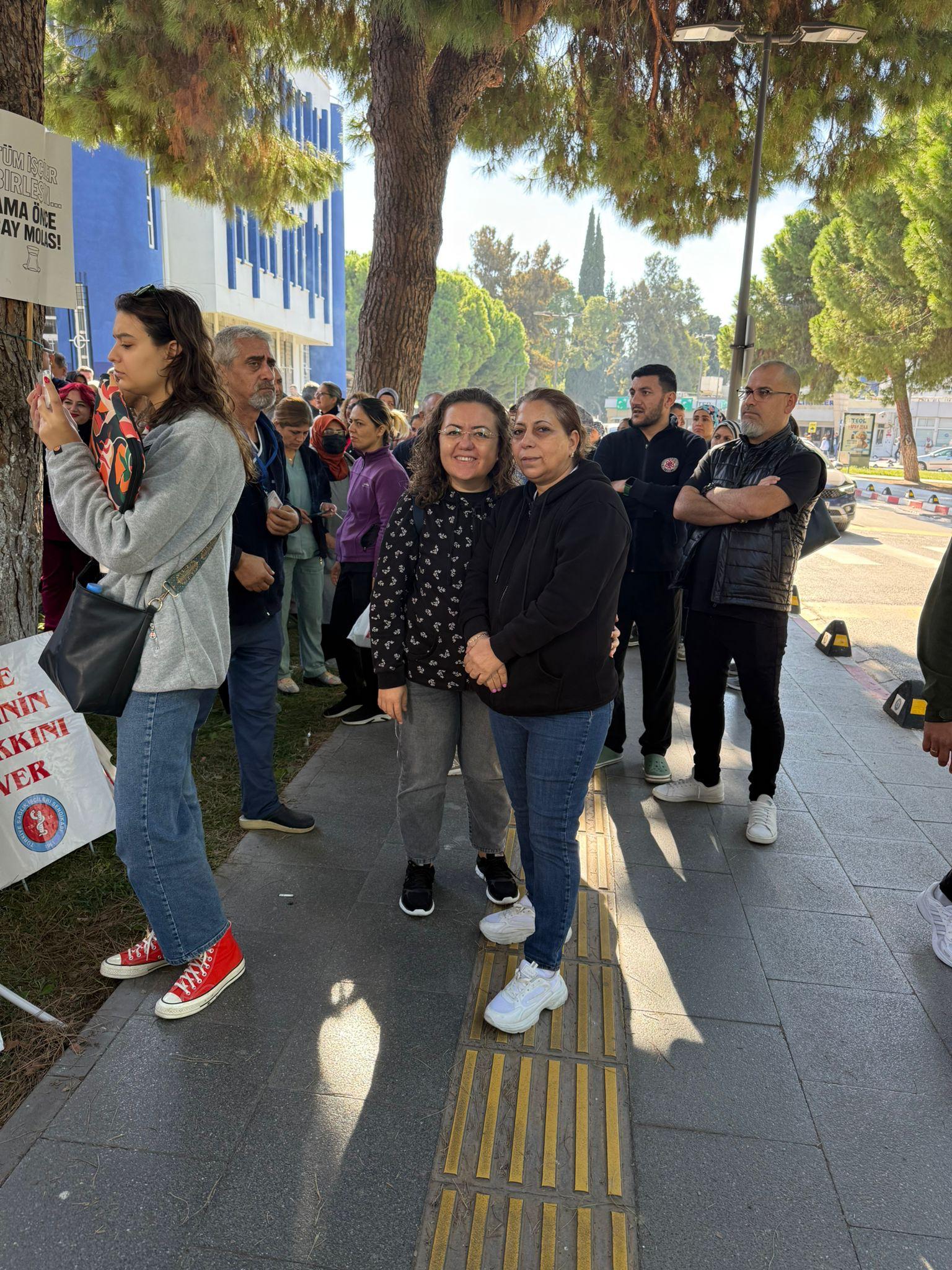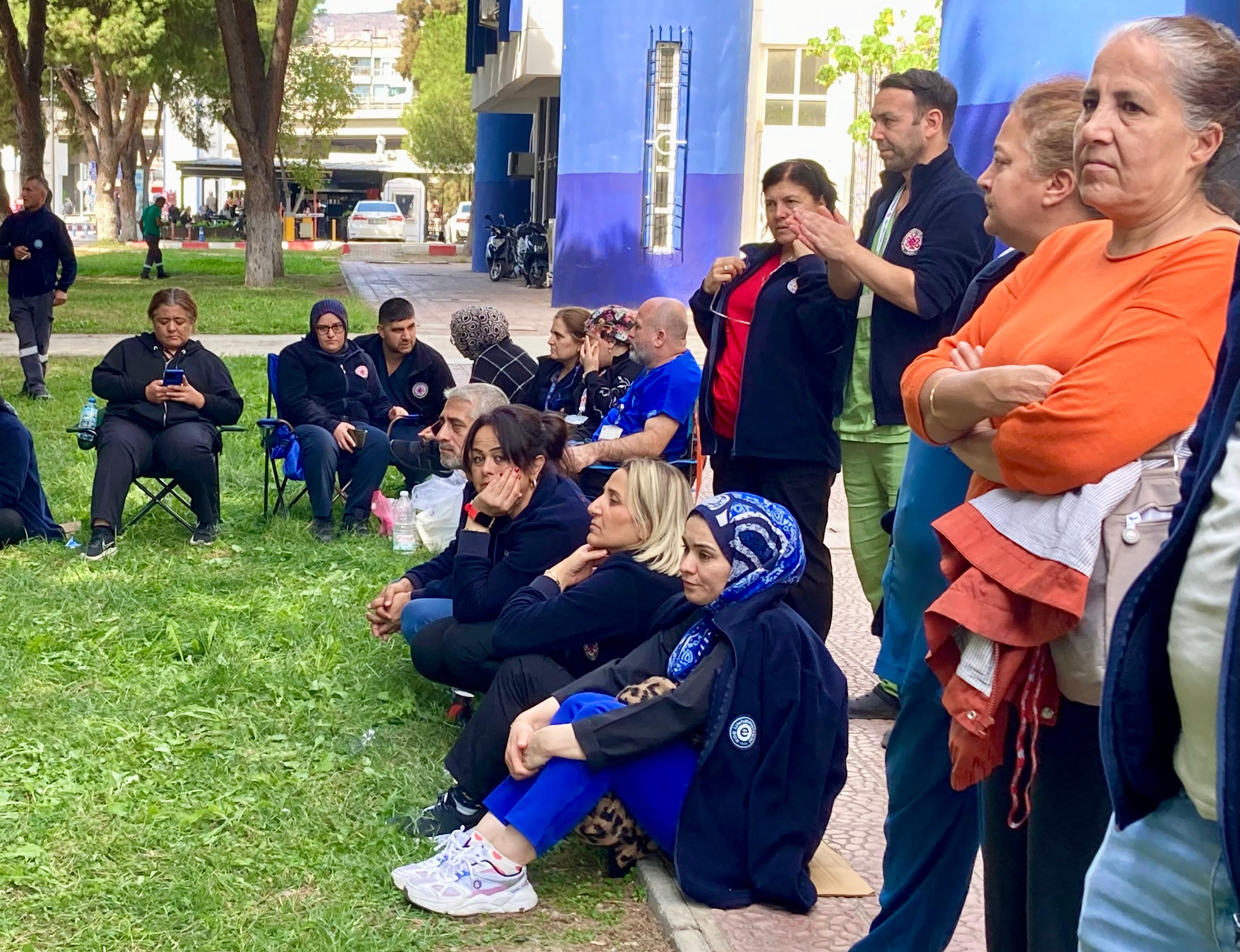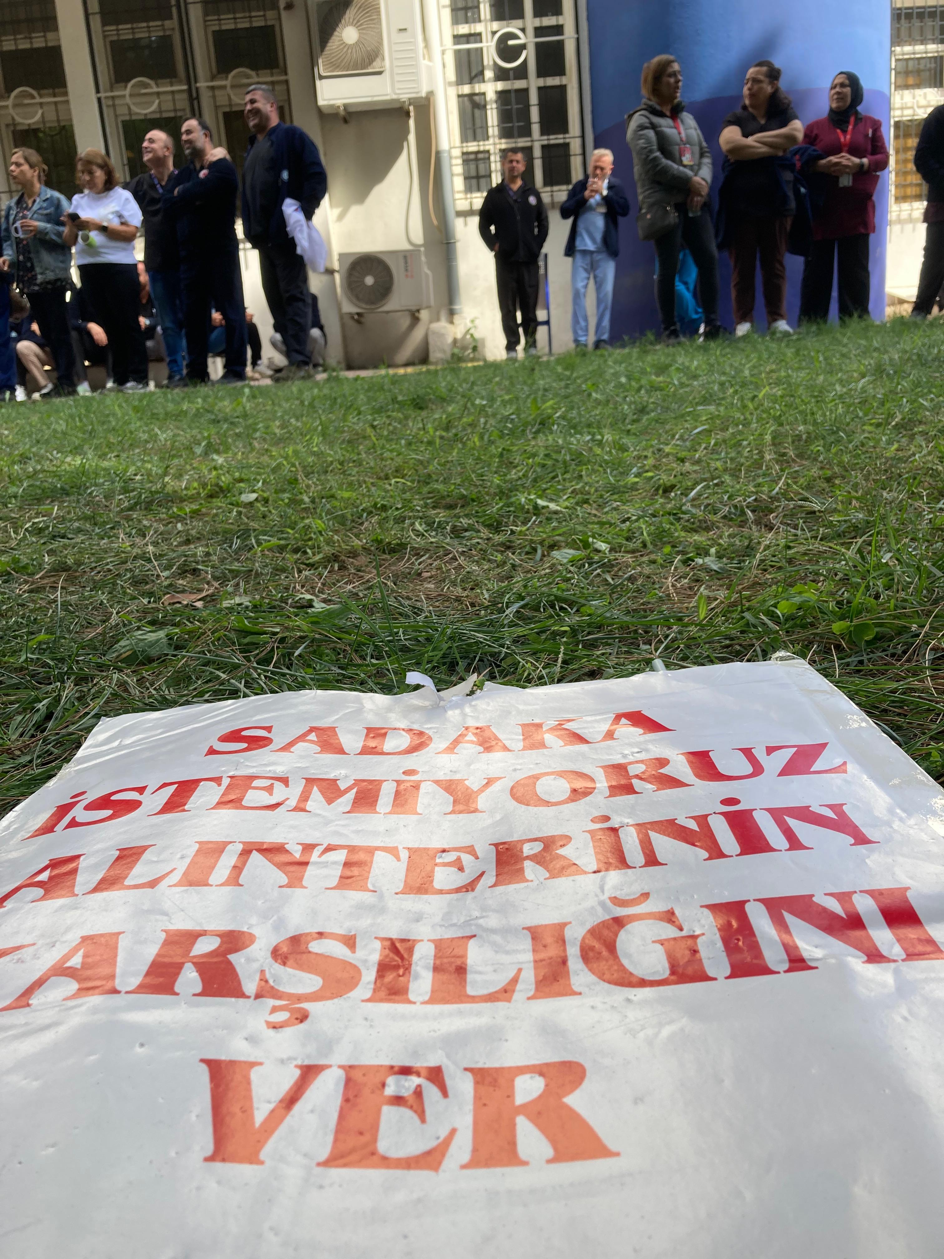 Acil ve yoğun bakım dışında hastanenin tüm birimlerinde sürdürülen eylemlerini hastane bahçesine taşıdılar,