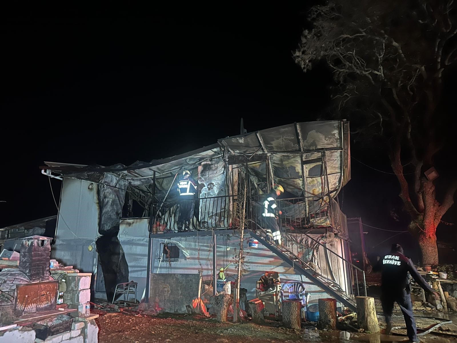 Yangın, Uşak'ın Sivaslı ilçesine bağlı Yenierice köyü Bahçesaray mevkiinde prefabrik evde meydana geldi. Edinilen bilgilere göre, Osman Türkmen (64) ile Fikriye Türkmen'in (62) yaşadığı evde henüz belirlenemeyen bir nedenle prefabrik evde alevler yükselmeye başladı. Hızlı büyüyen yangında alevler tüm evi sardı.