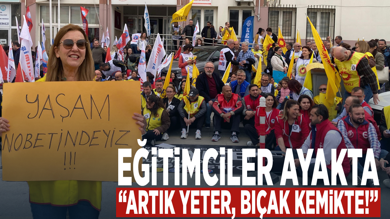 “Artık Yeter! Bıçak Kemikte” başlığıyla hazırlanan ortak basın açıklamasını Eğitim-Sen adına Mehmet Ramazan ve Eğitim-İş adına Aziz Deniz Oğuz okudu. Açıklamada, eğitim sisteminin geldiği nokta sert bir dille eleştirildi: