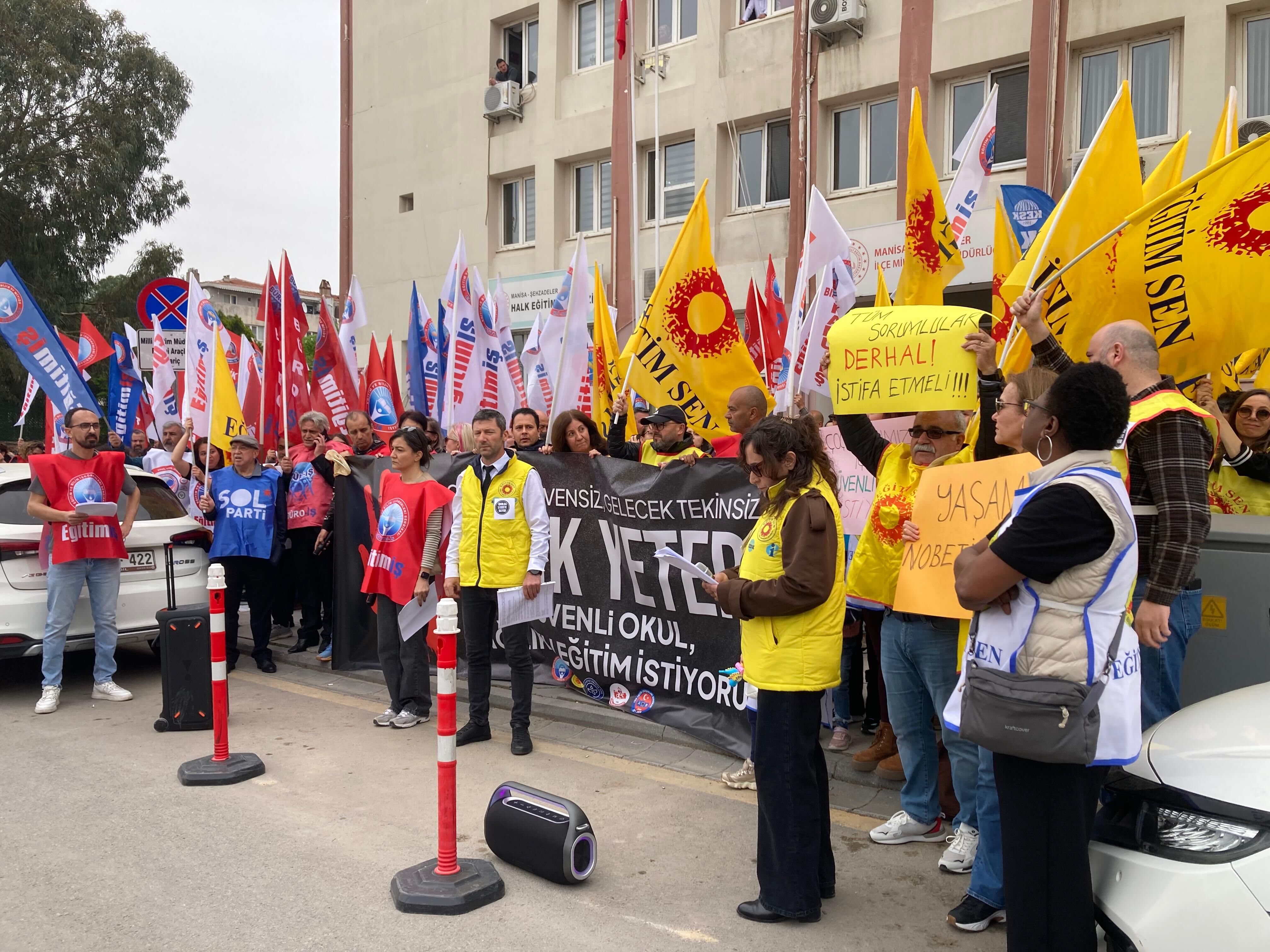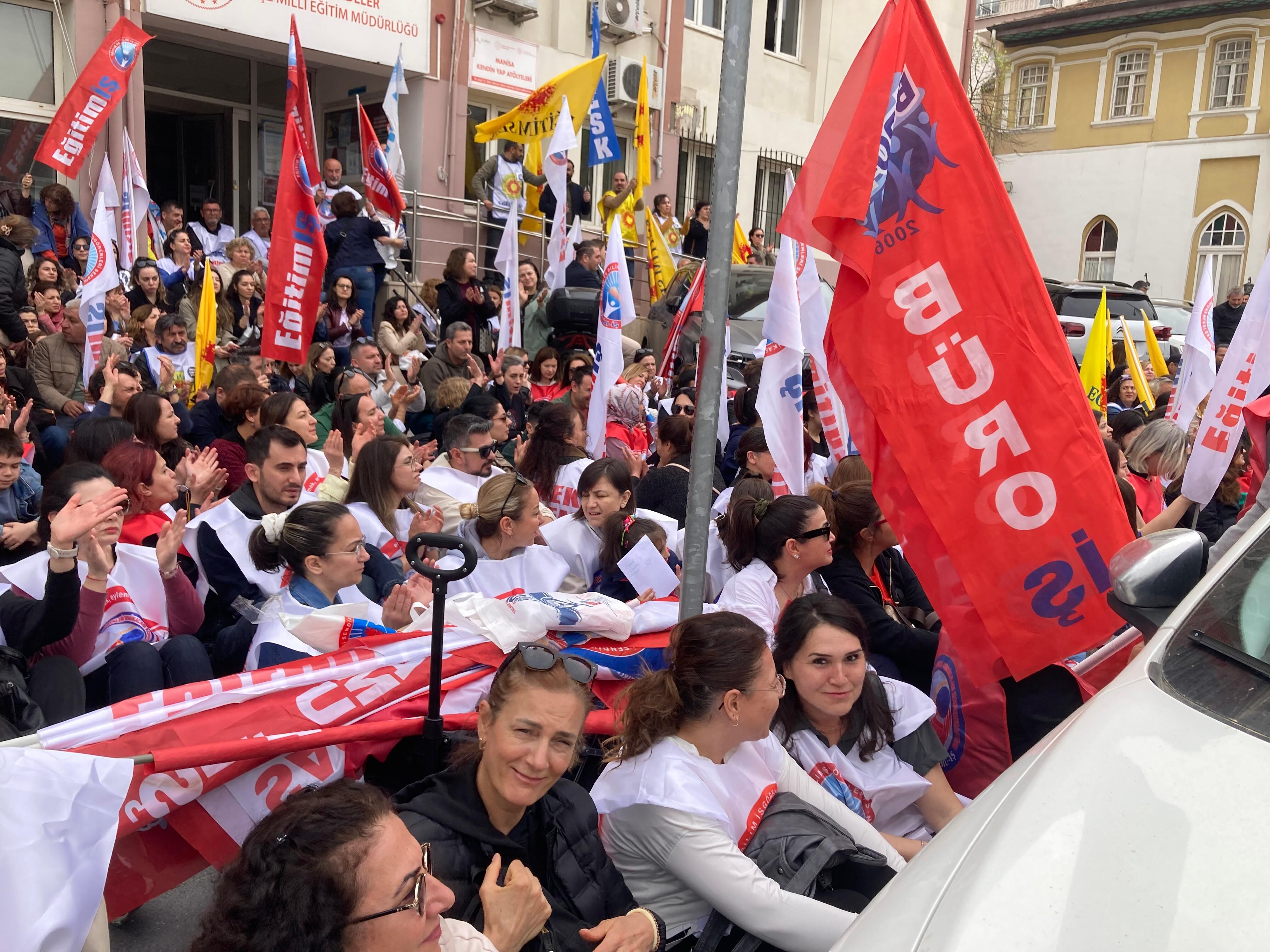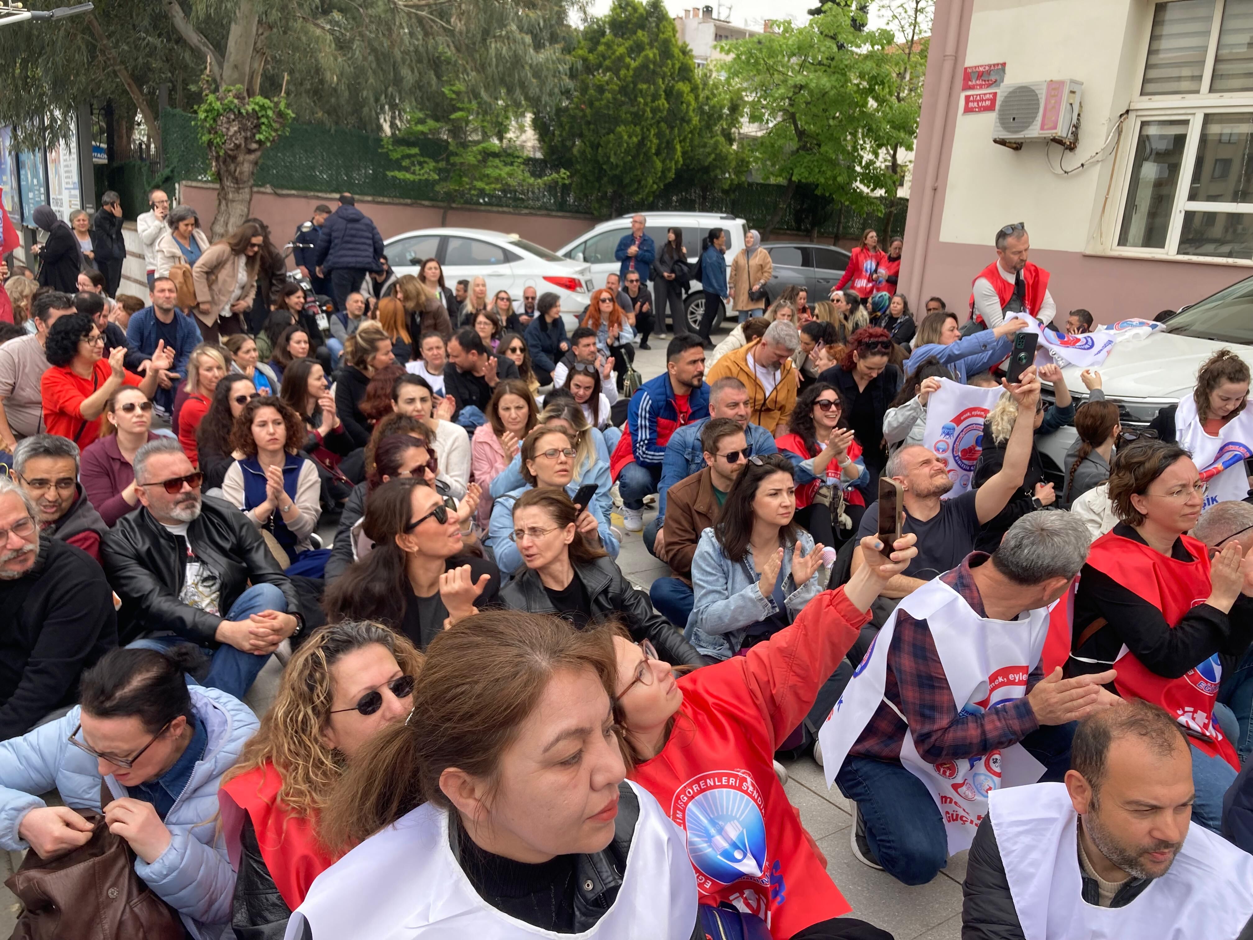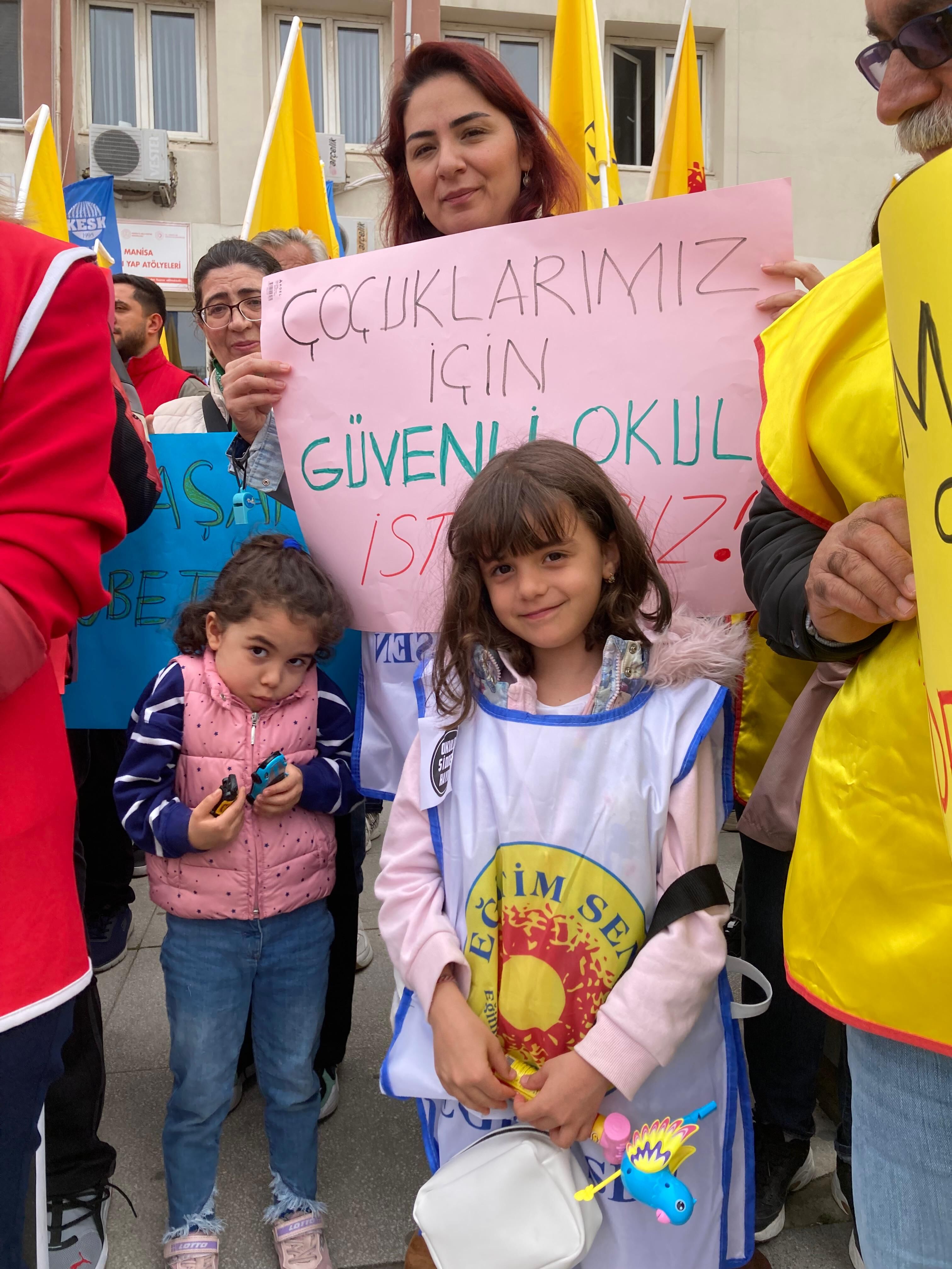 Manisa’da Eğitim-Sen ve Eğitim-İş öncülüğünde bir araya gelen yüzlerce öğretmen, Şehzadeler İlçe Milli Eğitim Müdürlüğü önünde toplandı. Siyasi parti temsilcileri, sendika yöneticileri ve çok sayıda eğitimcinin katıldığı eylemde duygusal anlar yaşandı. Bazı öğretmenlerin eyleme çocuklarıyla birlikte katılması dikkat çekerken, Milli Eğitim Müdürlüğü çalışanları da pencerelere çıkarak alkışlarla meslektaşlarına destek verdi.