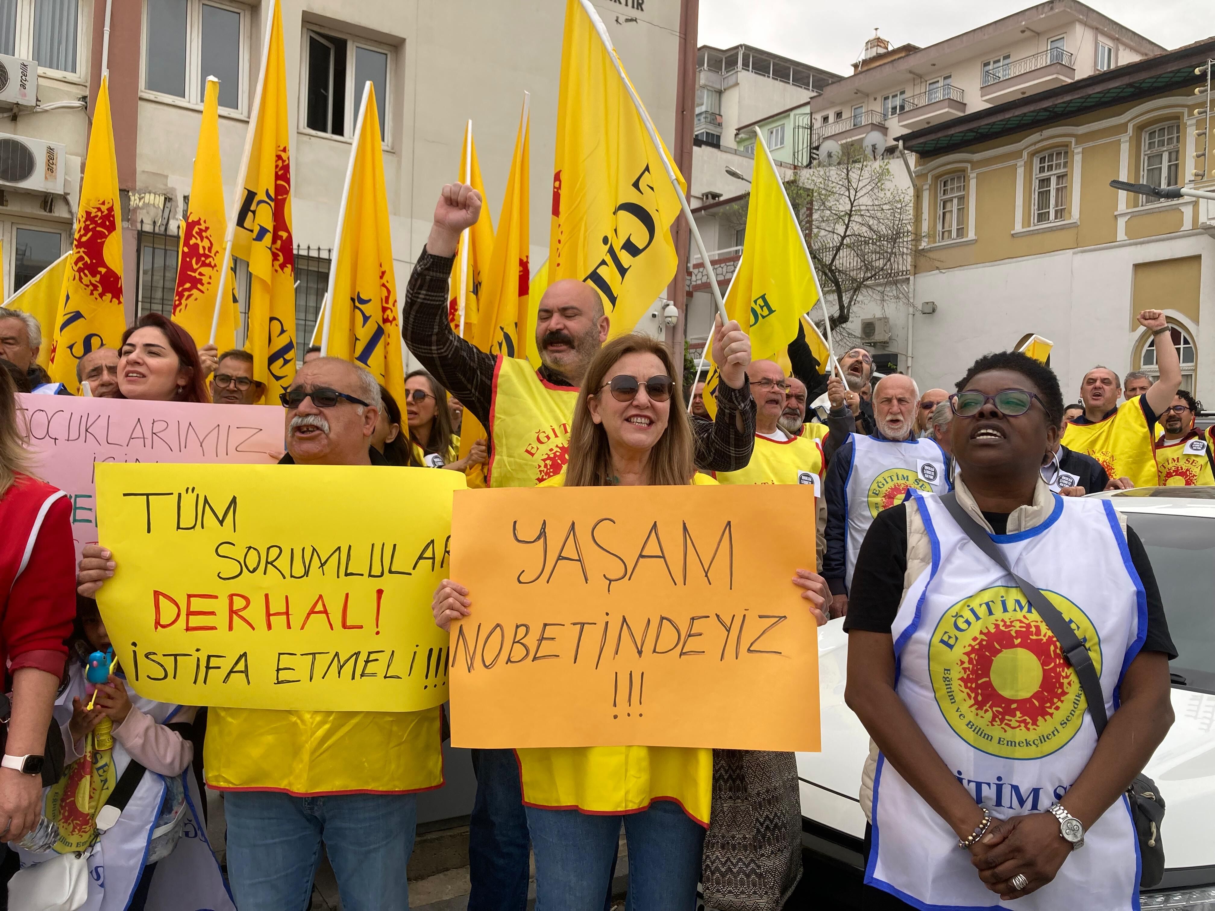 Basın açıklamasının ardından Şehzadeler İlçe Milli Eğitim Müdürlüğü önünde oturma eylemi yapan öğretmenler, ellerindeki dövizlerle Milli Eğitim Bakanı Yusuf Tekin’i istifaya çağırdı. Sendika başkanları Ramazan ve Oğuz, "Eğitimi şiddetin değil, yaşamın alanı haline getirmek için mücadelemiz sürecek. Ne okulda ne sokakta şiddeti normalleştirmeyeceğiz!" diyerek kararlılık mesajı verdi.