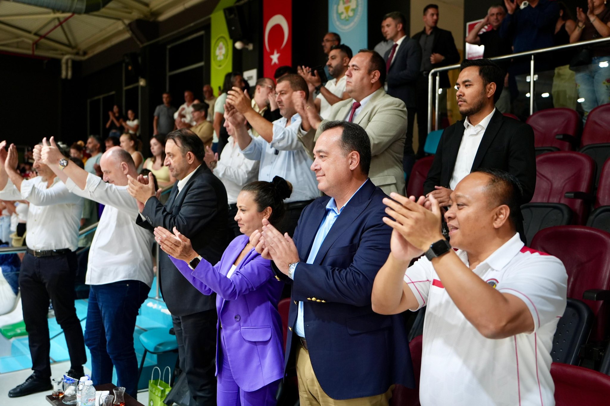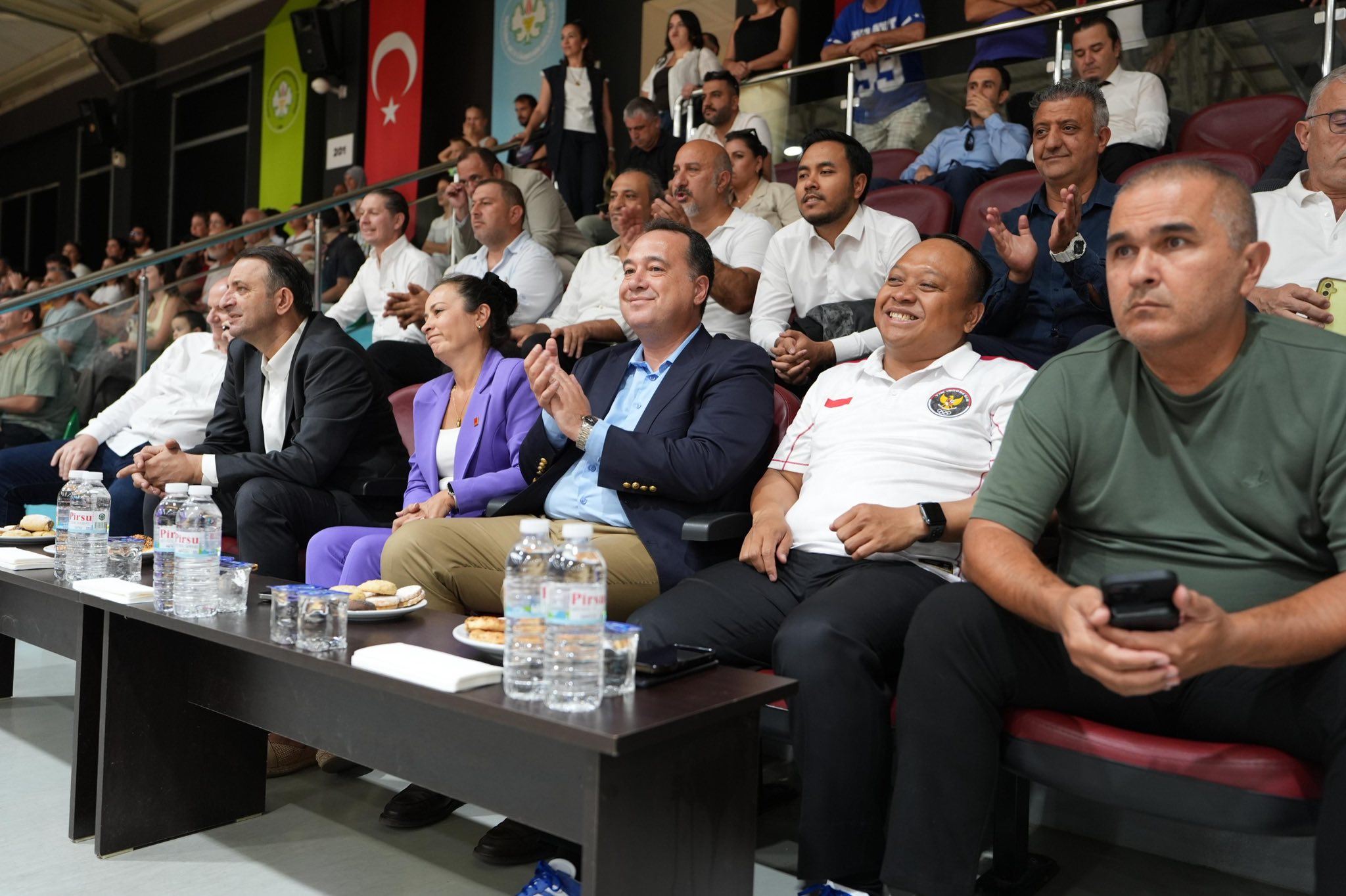 Büyükelçi Purnama, Manisa Büyükşehir Belediyespor Voleybol Takımı’nın yeni transferi, ünlü Endonezyalı voleybolcu Megawati Hangestri Pertiwi’yi izlemek üzere kente geldi. Dutlulu ve Büyükelçi Purnama, Manisa Büyükşehir Belediyespor ile Altınordu Spor kadın voleybol takımları arasında oynanan müsabakayı birlikte takip etti.