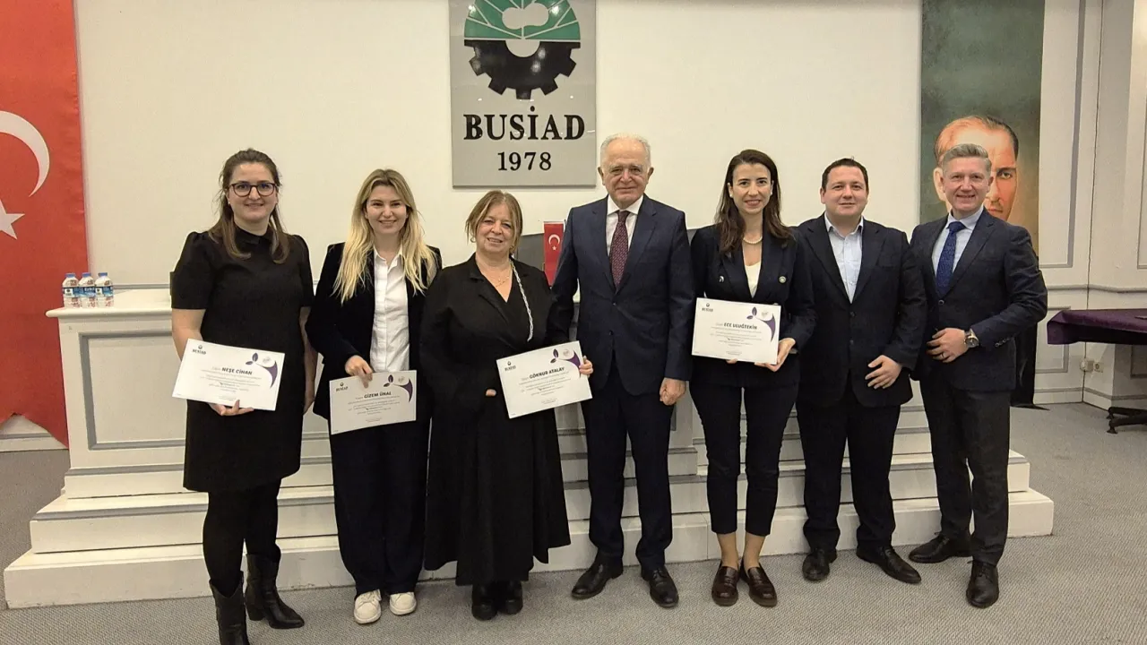 Soruları da yanıtlayan konuşmacılara daha sonra BUSİAD Yönetim Kurulu Başkan Yardımcısı Tuncer Hatunoğlu tarafından Çağdaş Eğitim Kooperatifi'nin “Kır Çiçekleri Okusun Diye” sosyal sorumluluk projesine adına yapılan bağışın sertifikası hediye edildi.
