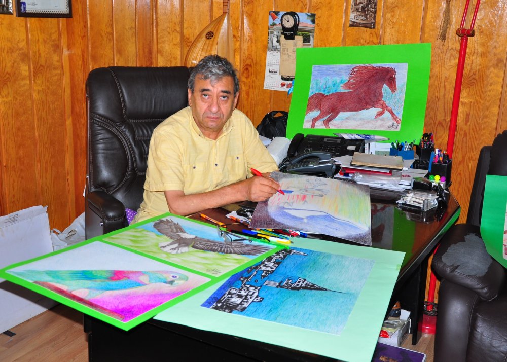 Merkez Efendi Mahallesindeki iş yerinde resimlerini yapan Göktaş, ayrıca iki ressam öğrenci yetiştiriyor. Sanatın engel tanımadığını belirten Göktaş, “Bir kazanın ardından kas erimesi ve kemik erimesi derken zorlanmaya başladım. En sonunda tekerlekli sandalyeye kadar düştüm. Resim yaparken her şeyi unutuyorum. Odaklandığım zaman hayat daha güzel geçiyor. Düşmenin neticesinde platinler takıldı. Şuan da iki ayağımda plantinli. Asıl mesleğim şekercilik. Daha sonra asansörcü oldum. Bu meslekte boş zamanlarım olduğunda oturduğum vakit resim yapıyordum. İlk önce küçük yapmaya başladım. Resim kalemlerinin çok renkli olduğunu öğrendikten sonra da her çeşidini buldukça da tükenmez kalem çalışması yapmaya başladım. Buldukça da öbür resimleri yapmadım. Çünkü kalkıp oturmam zorlaştı. Oturarak yapabildiğim için tükenmez kalem çalışmasına devam ettim. Engelim beni buraya itti. Şuan 700 ila 800 arasında resmim var. Aslında vücut engeli, engelliye engel değil. Başka engeller olmasın. Yaşamda insanlar insanlara çok engel çıkarıyor. En önemlisi de bu engelleri bazı insanların yardımıyla da aşıyoruz. Engelliler de birbirine yardım ettiği sürece engeller aşılır” diye konuştu.