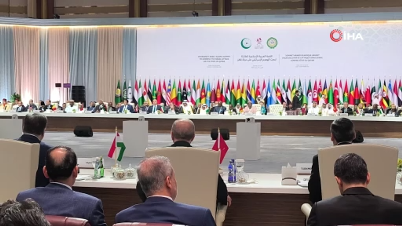 Erdoğan," Sözlerimin hemen başında soykırımcı İsrail'in Katar'a düzenlediği menfur saldırıda şehit edilen Filistinli ve Katarlı kardeşlerimize Allah'tan rahmet, yaralılara acil şifalar diliyorum. Yüce Rabbim şehitlerimizi cennetiyle, cemaliyle müşerref eylesin. 7 Ekim 2023'ten bu yana İsrail'in Gazze'de işlediği soykırım nedeniyle İslam İşbirliği Teşkilatı, Arap Ligi olağanüstü zirveleri düzenledik. Bu zirvelerde İsrail'in artan saldırganlığının artık bölgemiz için kesin kes durdurulması gereken bir tehdit oluşturduğunu dünyaya ilan ettik. Terörden beslenen bu çarpık zihniyetin uluslararası istikrar ve güvenlik için risk teşkil ettiğini defalarca ortaya koyduk. İsrail, Filistin'den sonra Lübnan'a, Yemen'e, İran'a ve Suriye'ye saldırdı. Tunus açıklarındaki sivil gemileri hedef aldı. Seçilmiş siyasetçilere ve devlet adamlarına suikastler düzenledi" dedi.