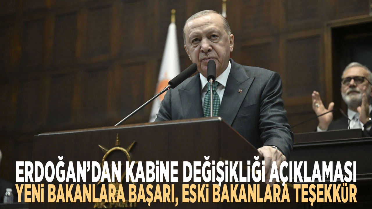 Cumhurbaşkanı Recep Tayyip Erdoğan, partisinin grup toplantısında açıklamalarda bulundu. Kabine'deki değişim hakkında kısa bir değerlendirme yapan Erdoğan, görevlerinden ayrılan Yılmaz Tunç ve Ali Yerlikaya'ya teşekkür etti. Yeni Adalet Bakanı Akın Gürlek ve İçişleri Bakanı Mustafa Çiftçi'ye ise başarılar diledi.