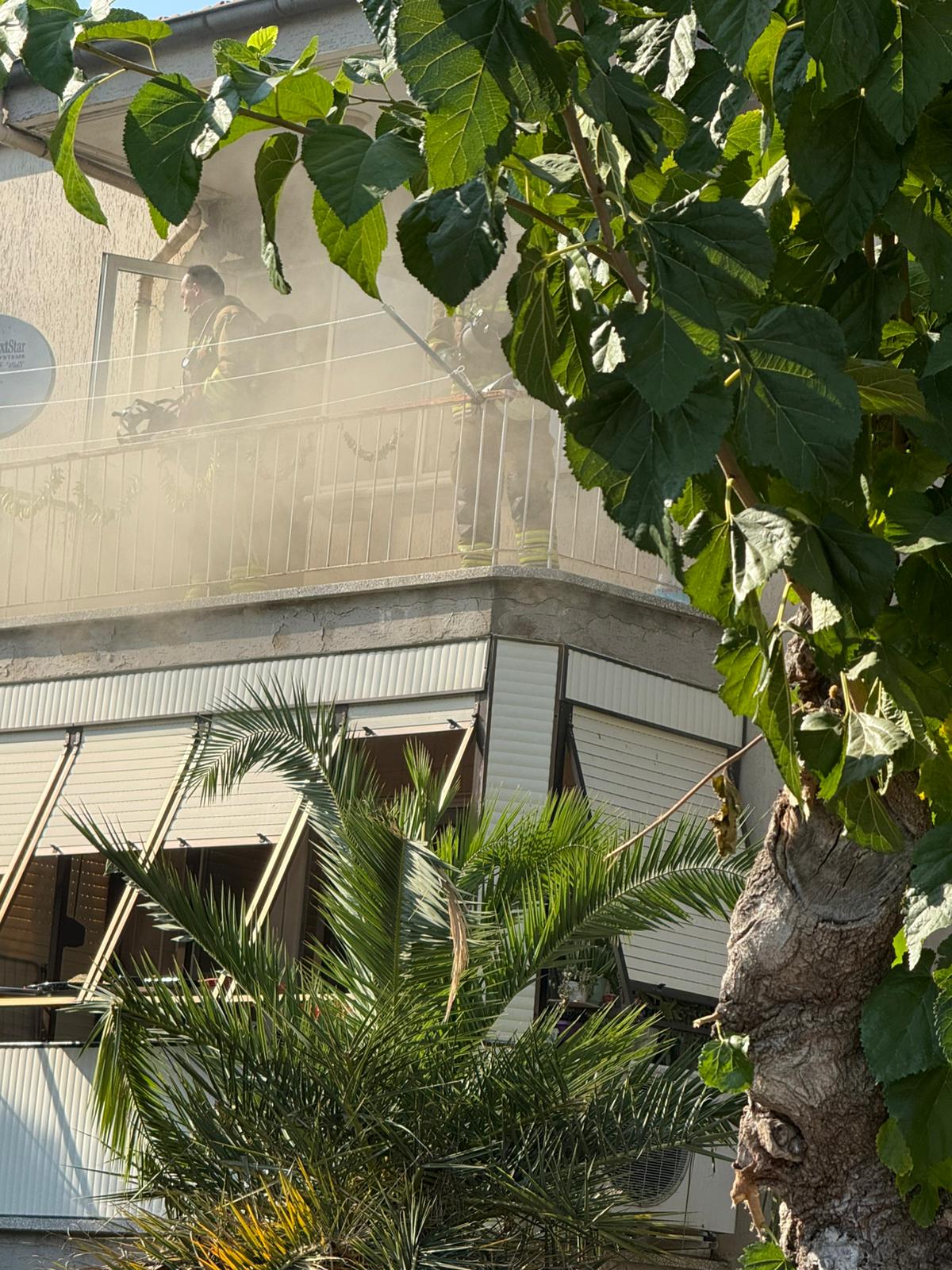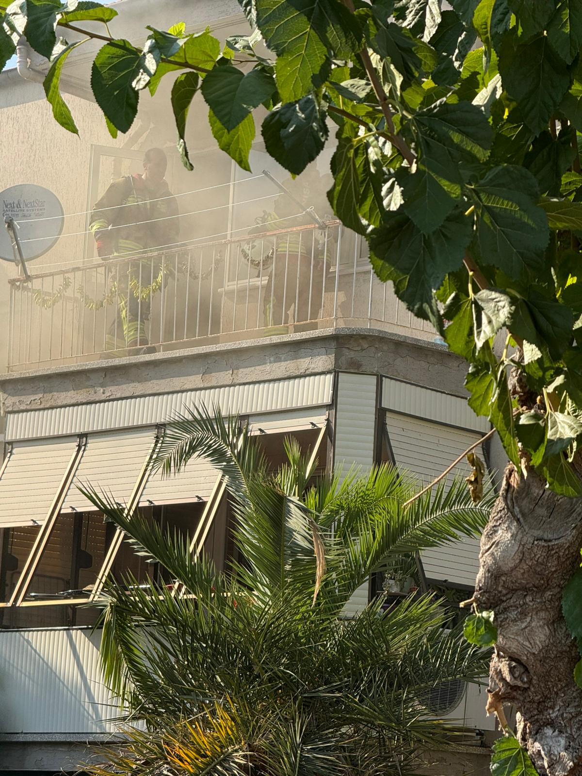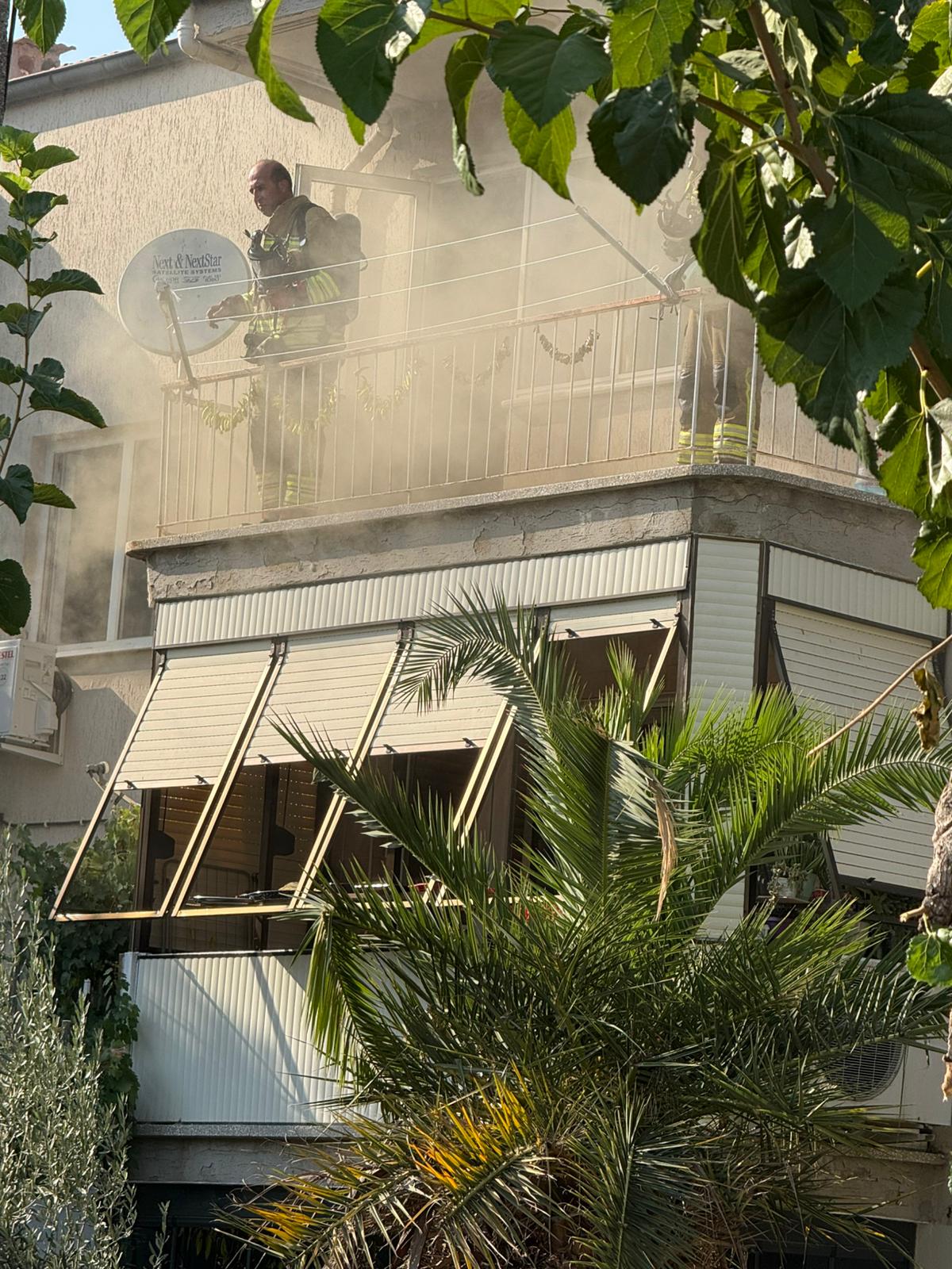 Kısa sürede olay yerine gelen itfaiye ekipleri evin balkonuna çıkarak yangını söndürdü.