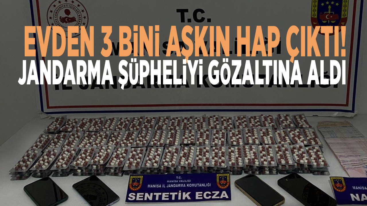 Manisa’da jandarma ekiplerinin düzenlediği operasyonda bir evde 3 bin 270 adet sentetik ecza hap ele geçirildi.