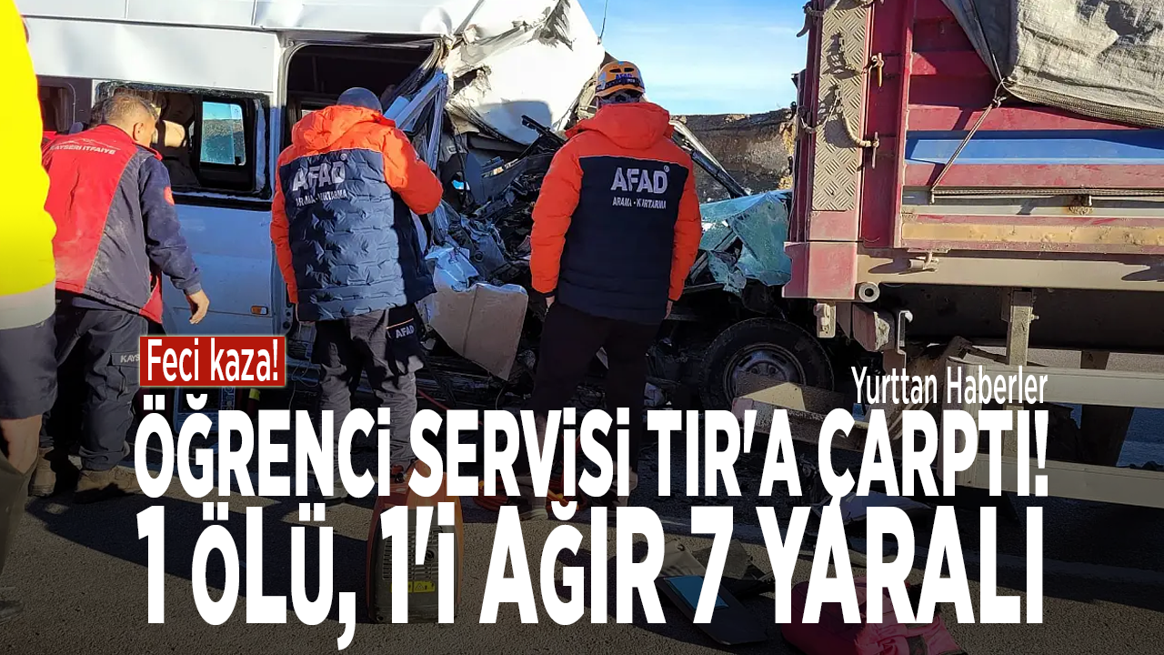 Malatya kar yolunda öğrenci servisinin TIR'a arkadan çarptığı kazada 1 kişi hayatını kaybetti, 1'i ağır, 7 kişi yaralandı.