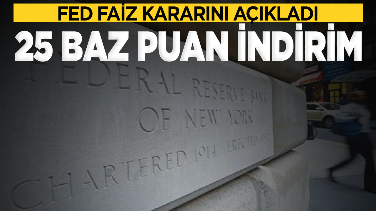 ABD Merkez Bankası (Fed), politika faizini beklentiler dahilinde 25 baz puan düşürerek yüzde 3,75-4 aralığına indirdi.