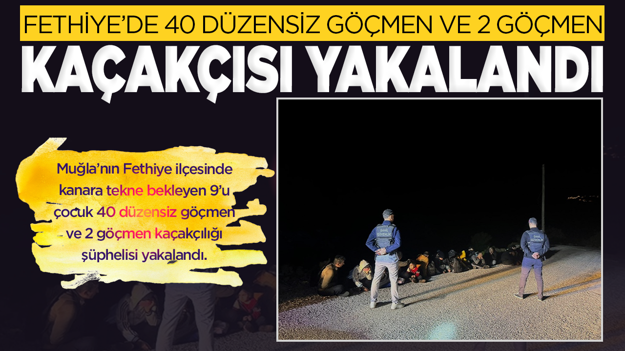 Fethiye ilçesi Yediburunlar mevkiinde bir grup düzensiz göçmen olduğu bilgisinin alınması üzerine görevlendirilen Sahil Güvenlik Botu, Sahil Güvenlik Kolluk Destek Timi (Fethiye/Koldestim) ve Fethiye İlçe Jandarma Komutanlığı personeli ile müştereken kara üzerinde bulunan 31 düzensiz göçmen (beraberinde 9 çocuk) ve 2 göçmen kaçakçısı şüphelisi yakalandı.
