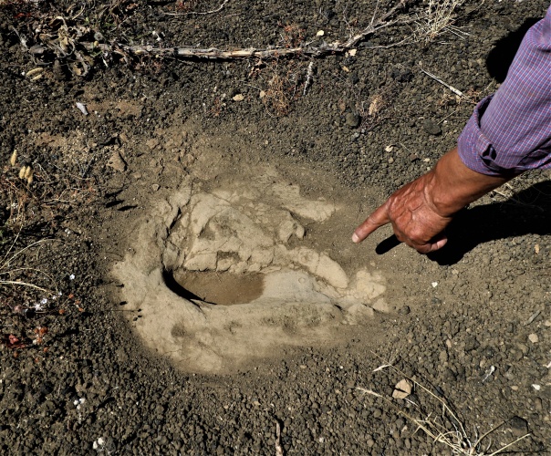 Ayak izlerinin volkan patlamasından sonra kaçan insanlar tarafından bırakıldığı bilgisini veren Muhtar Üçtaş, “Volkan patlaması sırasında aşağıdan bu yöne doğru püskürme olduğu düşünülüyor. Fakat izler de patlamadan tarafa kaçıldığını gösteriyor. Ayak izlerinin istikamet patlamanın olduğu istikamete doğru. Burada bir çelişki var. Oradan patlama olduysa bu insanlar neden patlamanın olduğu yöne doğru kaçtı? Daha önce bu barajın altında Gediz çayı akıyordu. Çaya mı gittiler orasını bilemiyoruz” dedi.
