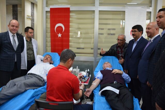 Konuşmaların ardından önce sağlık kontrolünden geçirilen AK Partili vekiller daha sonra sedyeye yatarak kan bağışladı. AK Partili Özdağ’ın sedyede yattığı sırada bir yandan etrafındaki ilçe başkanları ve belediye başkanlarıyla hizmet konuşması bir yandan da kan vermesi ise dikkat çekti.