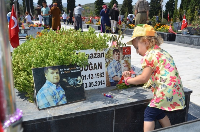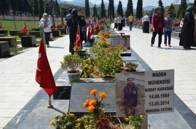 301 işçinin hayatını kaybettiği ve Türkiye'nin en büyük maden faciası olarak kayıtlara geçen Soma'da, maden şehitlerinin yakınları şehitliği ziyaret etti.