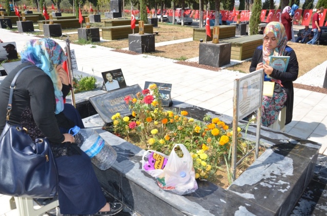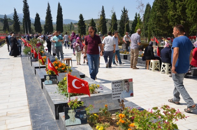 Kurban Bayramı arifesinde 33 maden şehidinin kabirlerinin bulunduğu Soma maden şehitliğinde gözyaşları sel oldu.