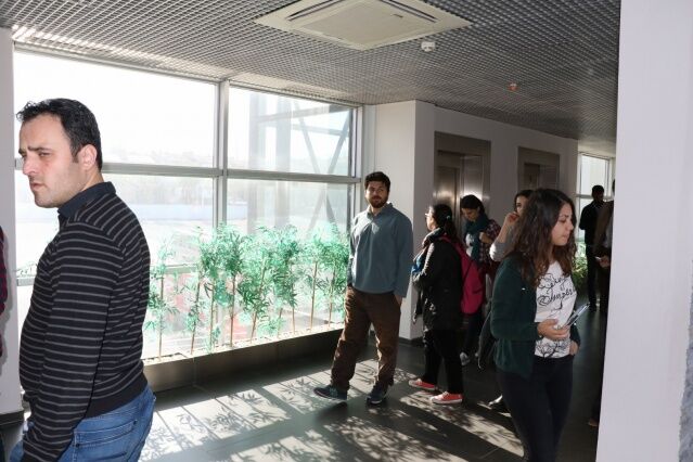Öğrenciler cep telefonları ve fotoğraf makinalarıyla binanın fotoğraflarını çekerek, anlatılan bilgileri dinlediler.