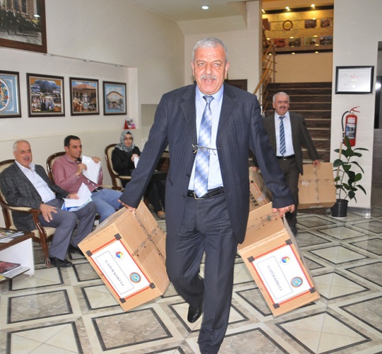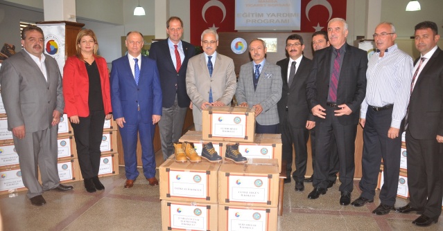 Vali Güvençer ilk botları Cumhuriyet İlkokulu yetkilisine teslim etti.