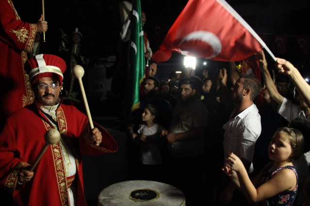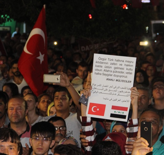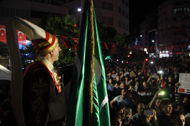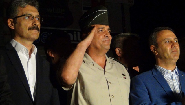 Manisa'da askeri darbe girişimine karşı demokrasi nöbeti tutan vatandaşlarla buluşan Manisa İl Jandarma Komutanı Albay Bülent Mercan için vatandaşlar 'En büyük asker bizim asker' sloganları attı.