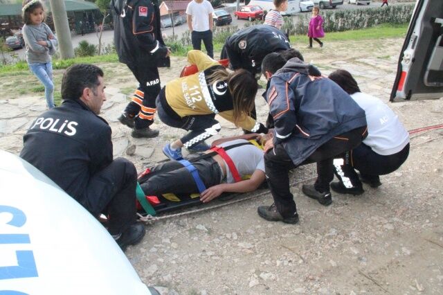 BADEM AĞACINDAN DÜŞEN ÇOCUK BÖYLE KURTARILDI