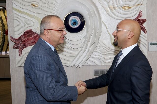 Manisa Barosu Başkanı Ali Arslan, yeni yönetim kurulu üyeleri ile birlikte Manisa Büyükşehir Belediye Başkanı Cengiz Ergün’e nezaket ziyaretinde bulundu. Ziyarette yönetim kurulu üyelerini Başkan Ergün’e tanıtan Arslan, Manisa’ya yapılacak projelerde işbirliği içerisinde olacaklarının mesajını verdi.