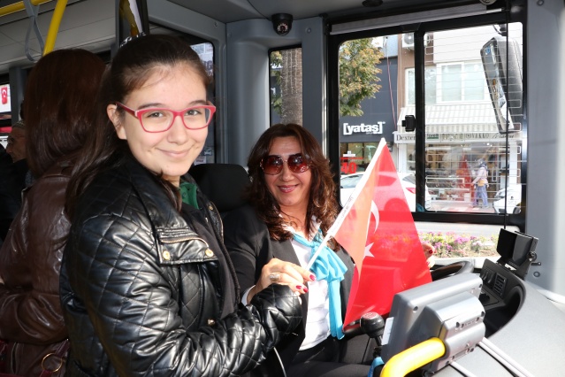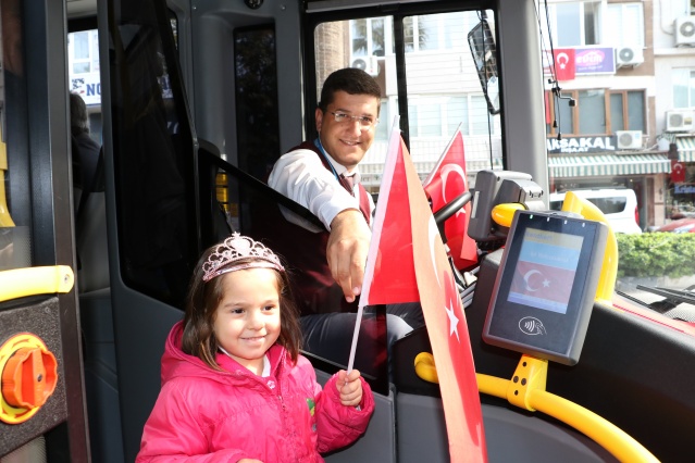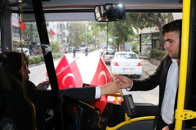 Manisa Büyükşehir Belediyesi, 29 Ekim Cumhuriyet Bayramı dolayısıyla MANULAŞ’a ait toplu ulaşım araçlarında vatandaşlara Türk Bayrağı dağıttı. Otobüse binen yolculara tek tek Türk Bayrağı armağan eden otobüs şoförleri, yolcuların 29 Ekim Cumhuriyet Bayramı’nı kutladı.
