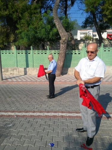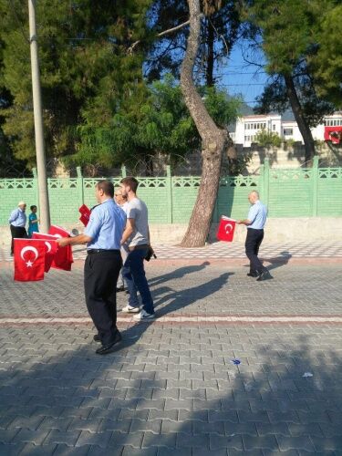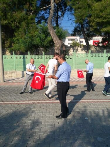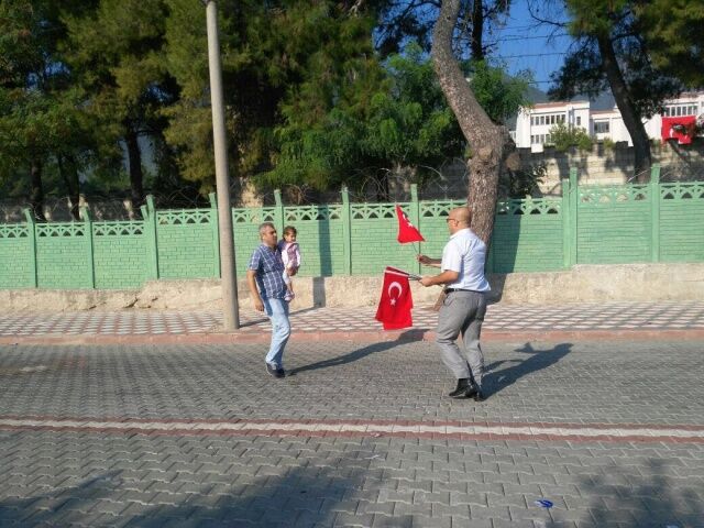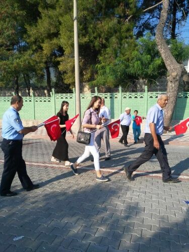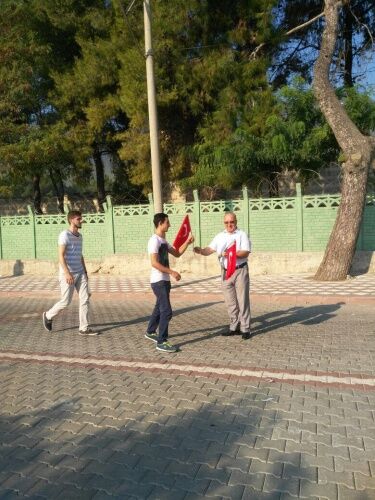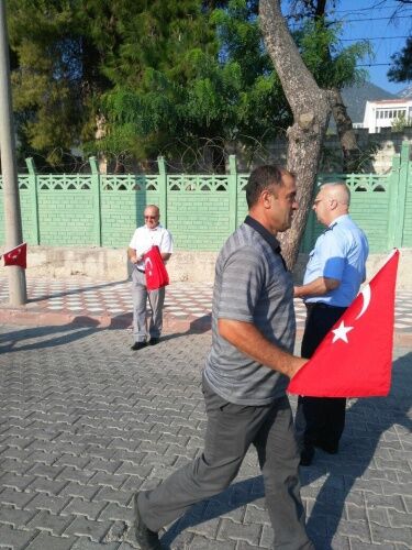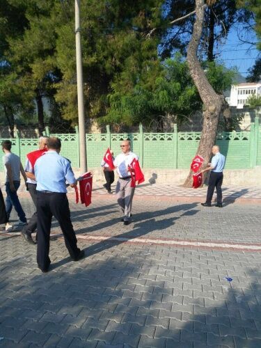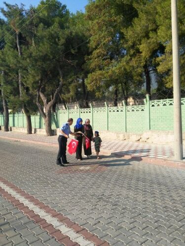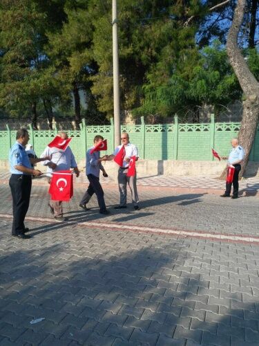 MANİSA Büyükşehir Belediyesi Zabıta Dairesi Başkanlığı’na bağlı zabıta ekipleri, Kırkağaç 6. Jandarma Komando Eğitim Alay Komutanlığı’nda vatani görevlerini yapan Mehmetçiğin yemin töreni öncesi vatandaşlara 4 bin adet Türk Bayrağı dağıttı.